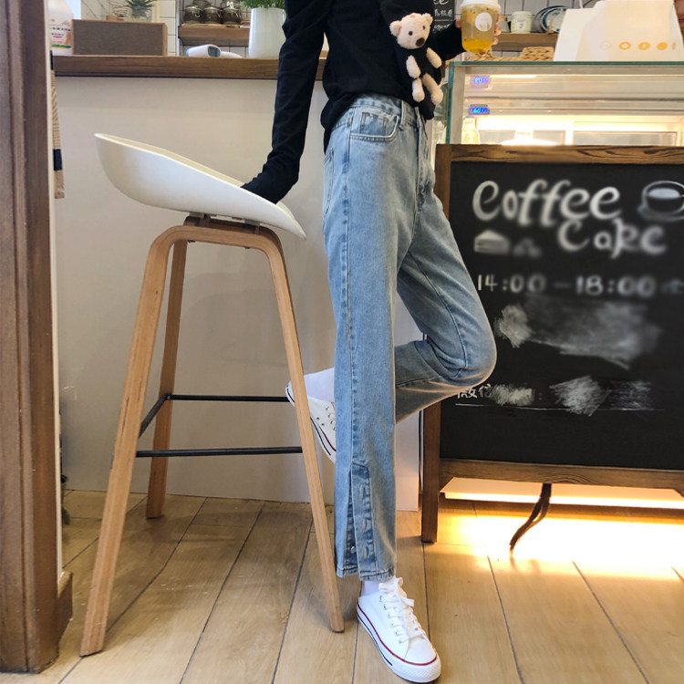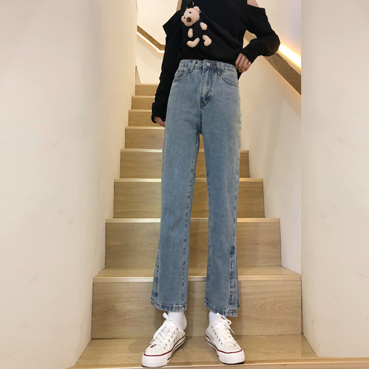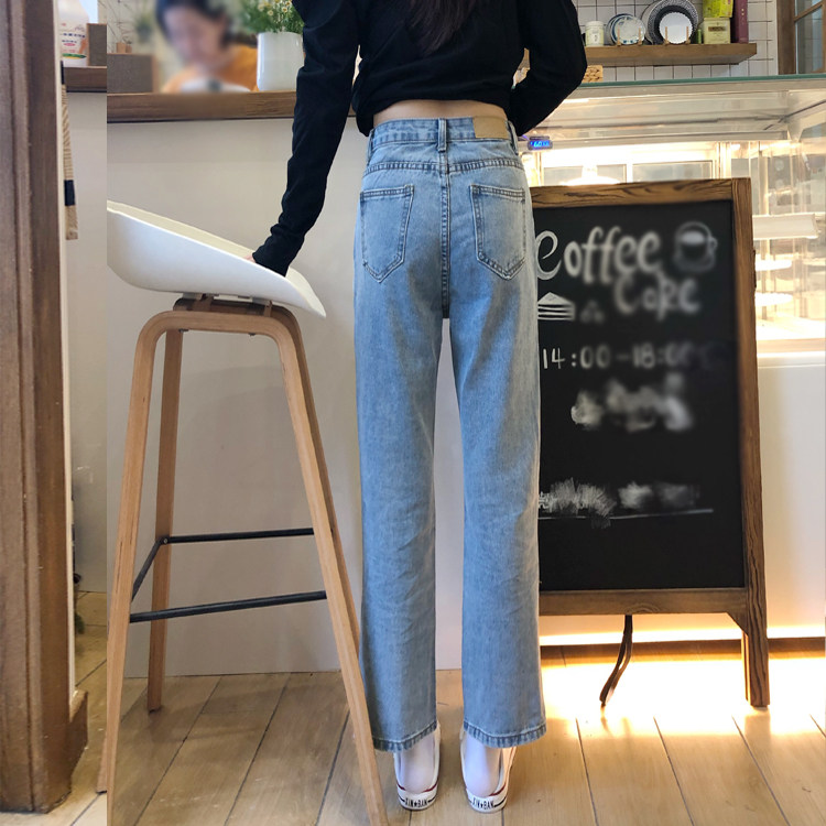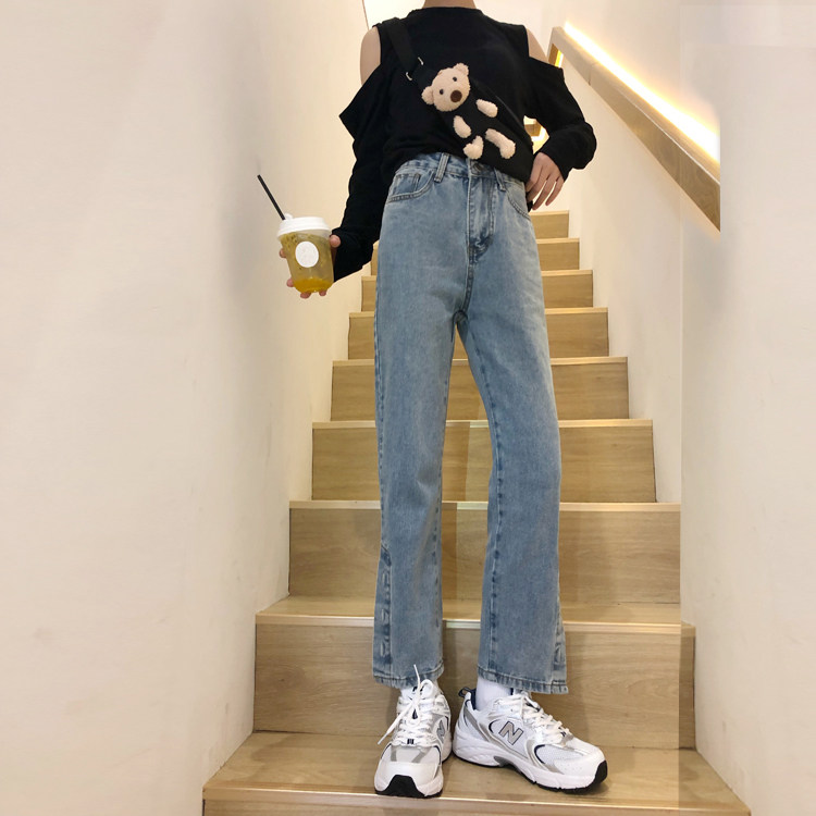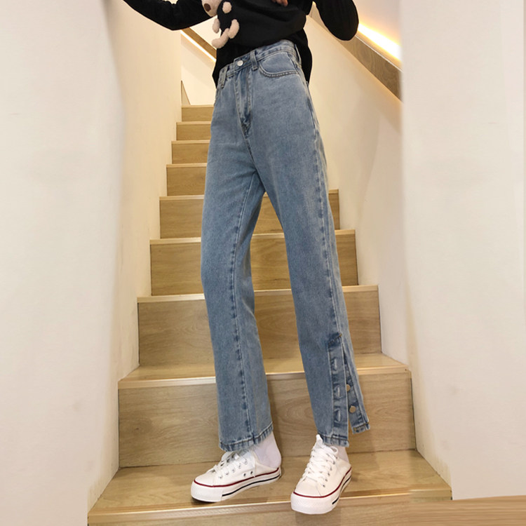 Джинсы, весенние дизайнерские штаны, высокая талия, облегающий крой, в корейском стиле, тренд сезона, свободный прямой крой
