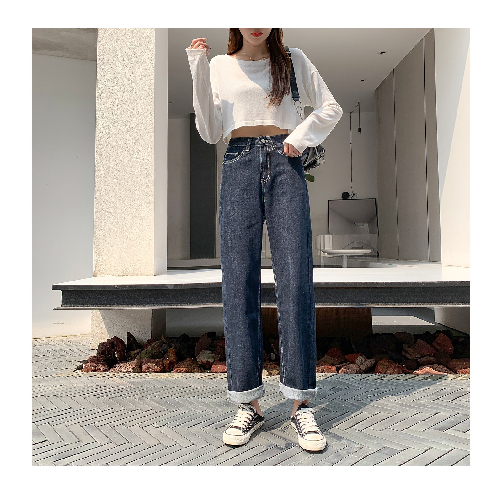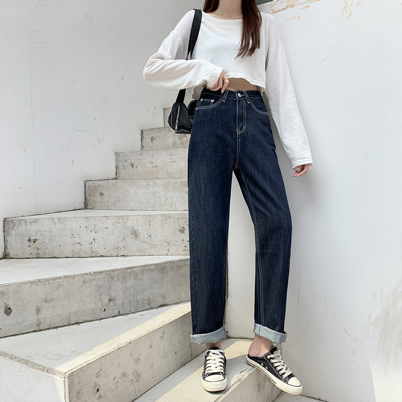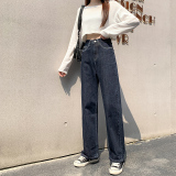 Осенние приталенные штаны, джинсы, 2023, свободный прямой крой, в корейском стиле, высокая талия
