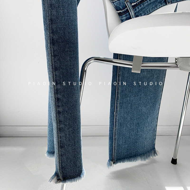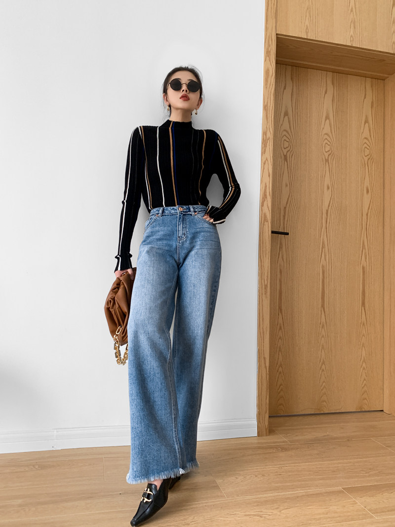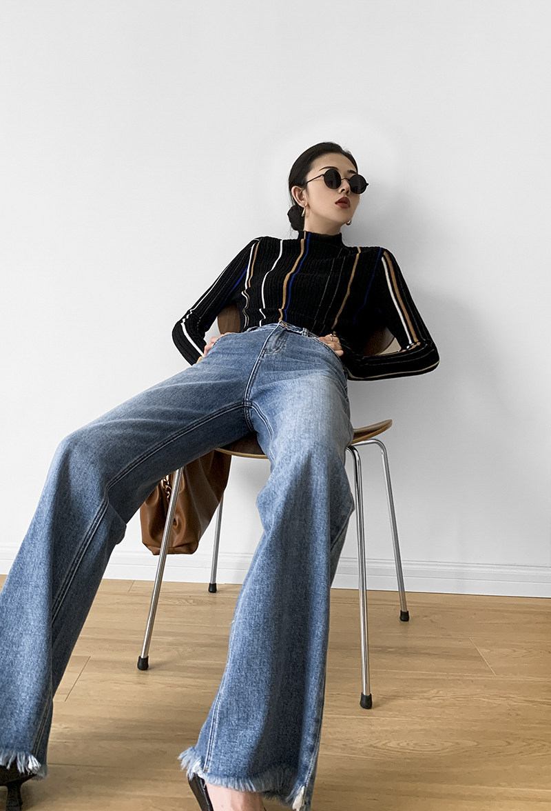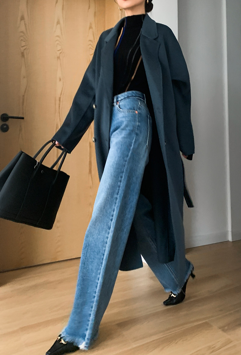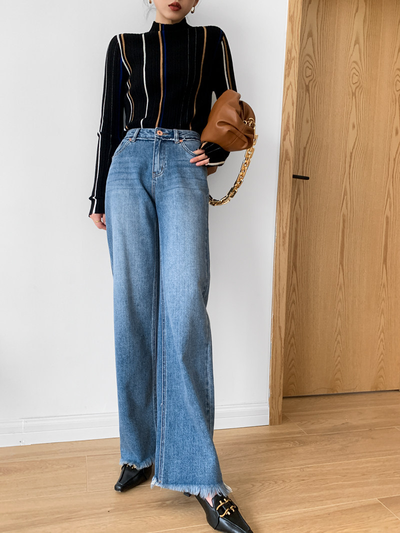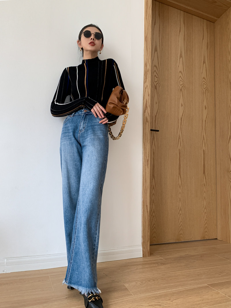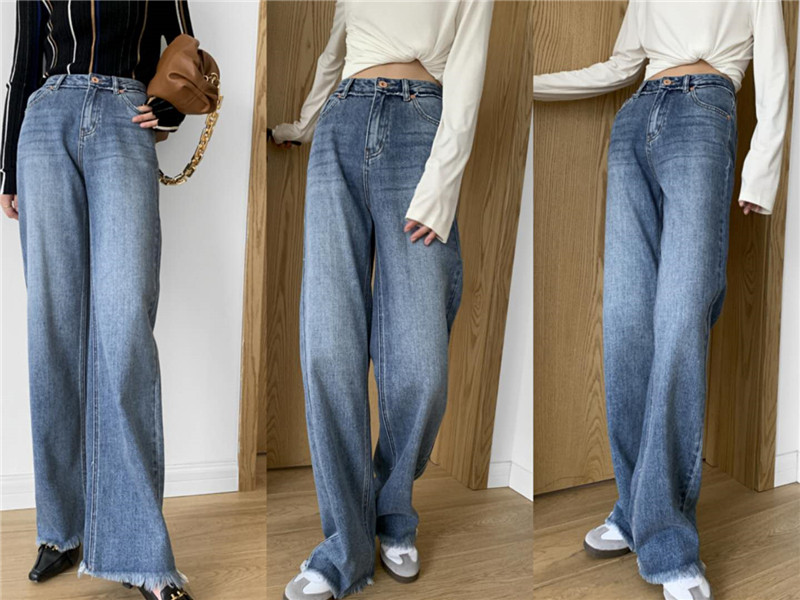 Джинсы, штаны, свободный прямой крой, высокая талия, в корейском стиле, 2020