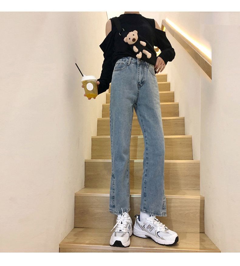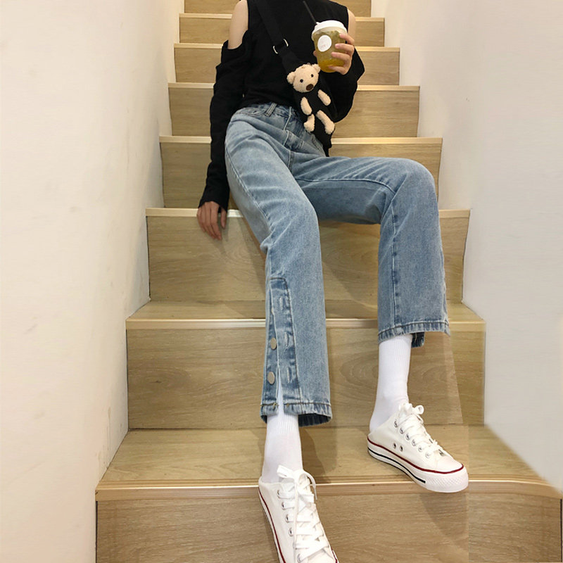 Джинсовые джинсы, приталенные штаны, 2022, свободный прямой крой, высокая талия