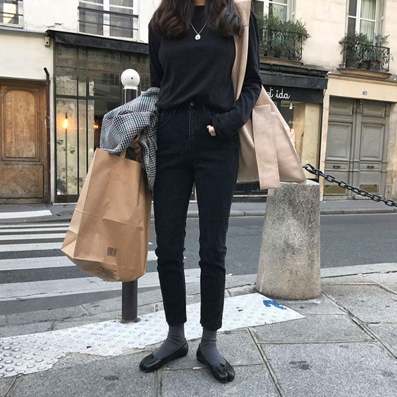 - 8841 Черные брюки, нахмуренные стиль