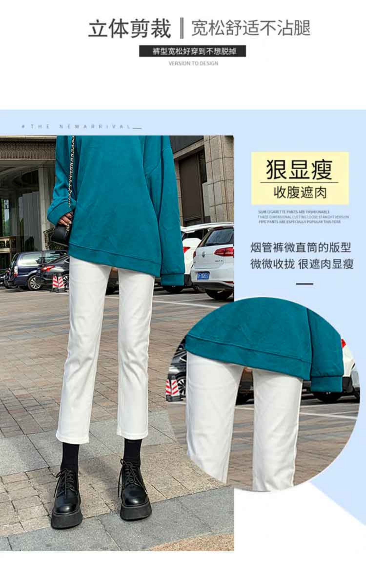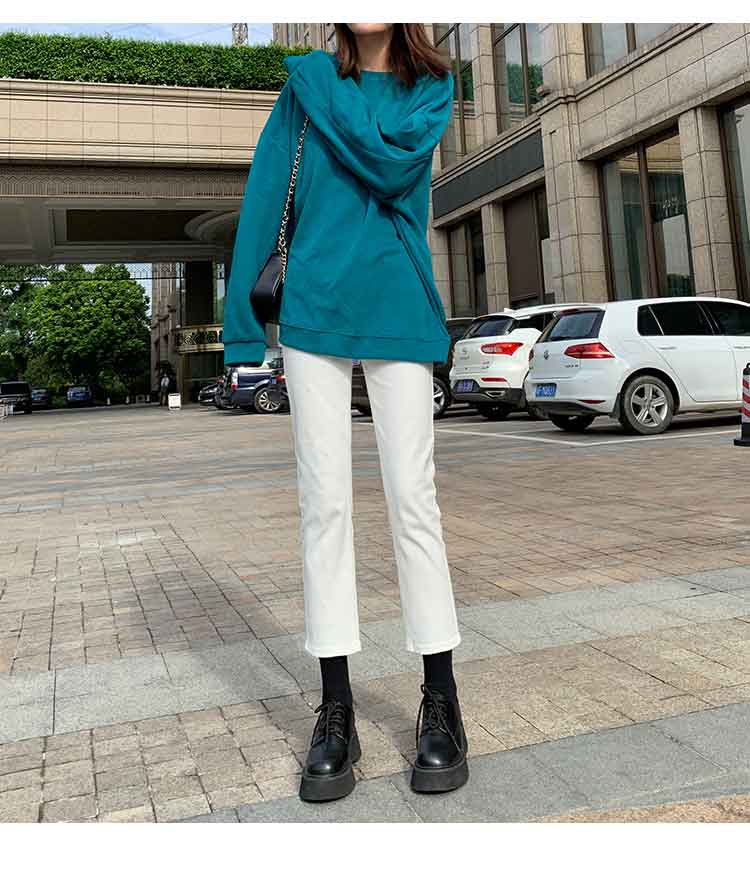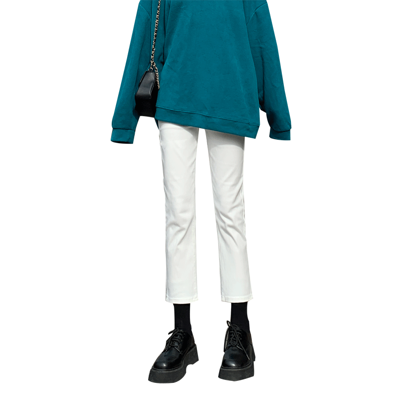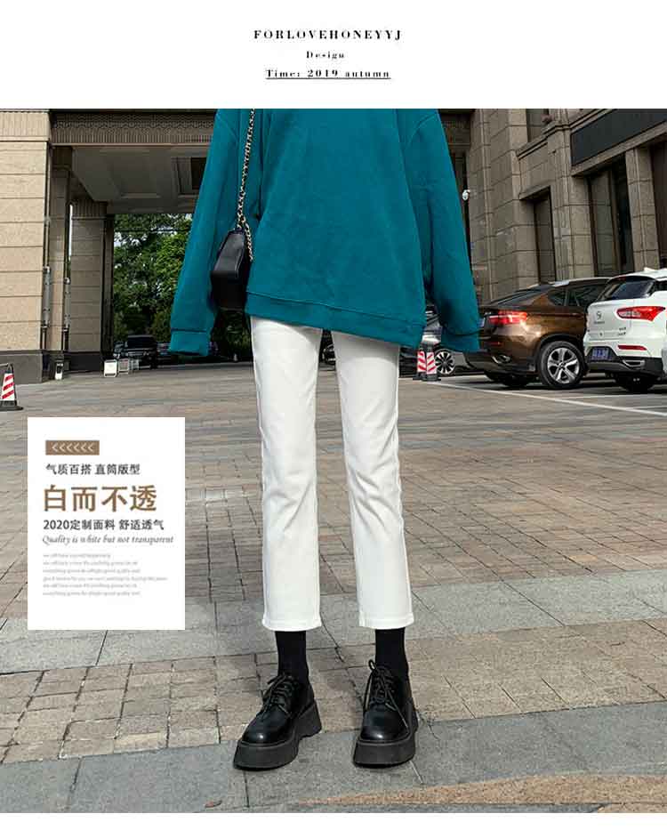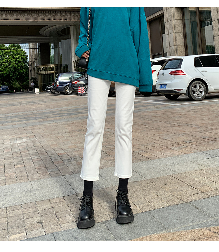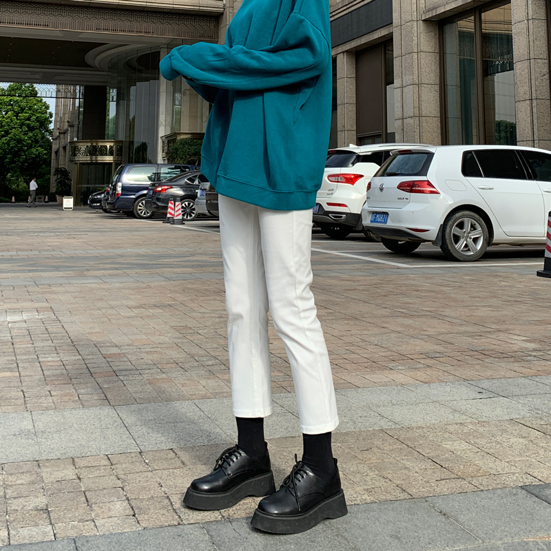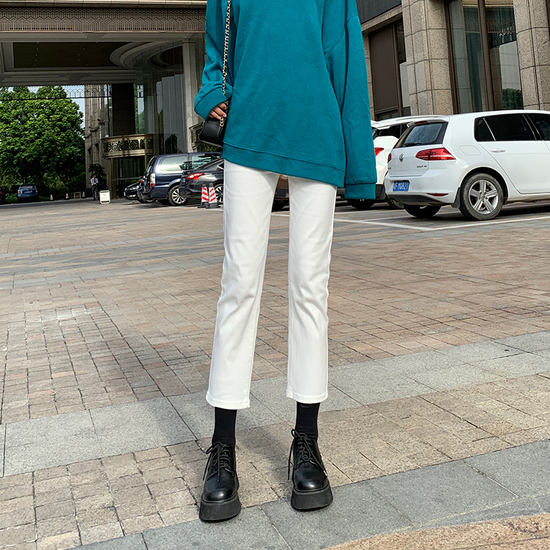 Белые весенние осенние прямые свободные джинсы, штаны, высокая талия, свободный крой