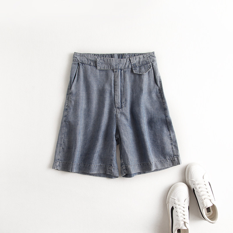 Джинсовая юбка, шорты, тонкие шелковые штаны для отдыха, высокая талия, свободный прямой крой, эластичная талия