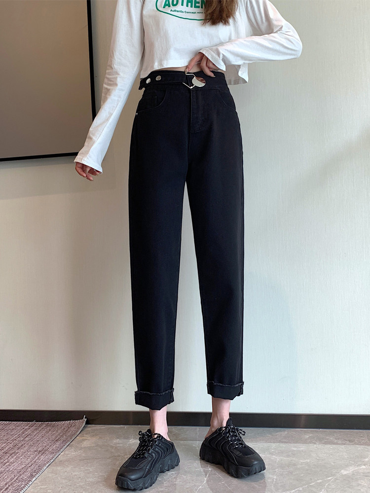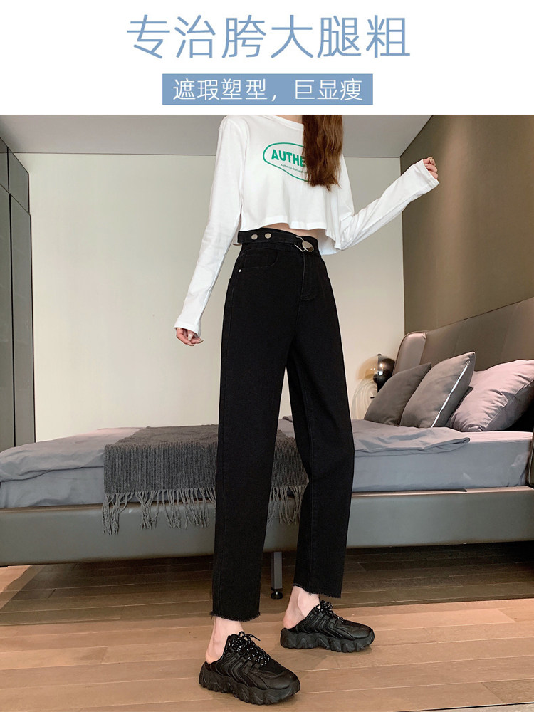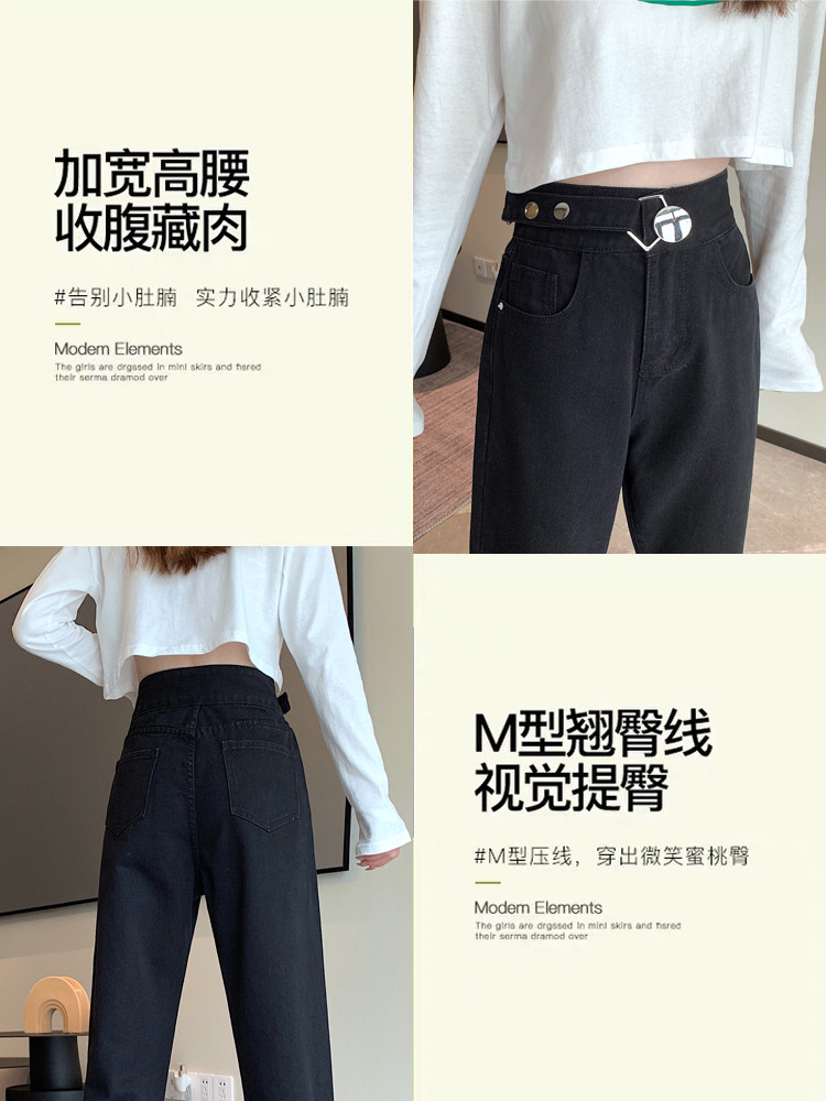 Осенние черные джинсы, приталенные штаны, коллекция 2023, свободный прямой крой, оверсайз, большой размер, высокая талия