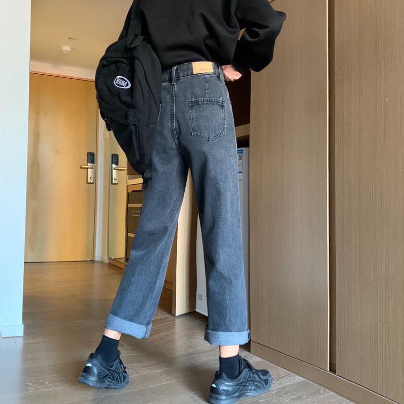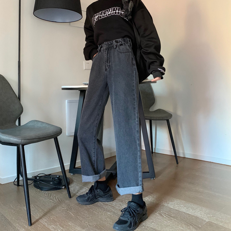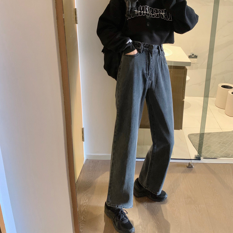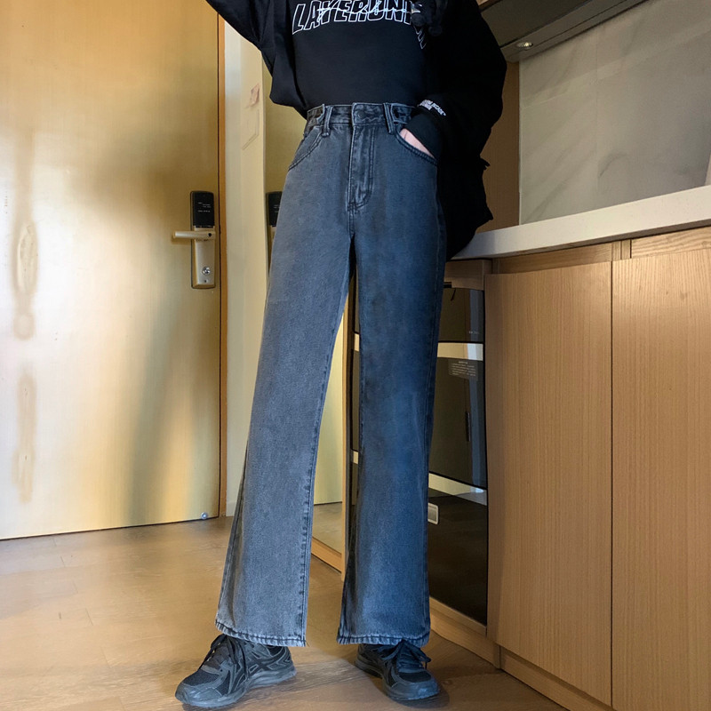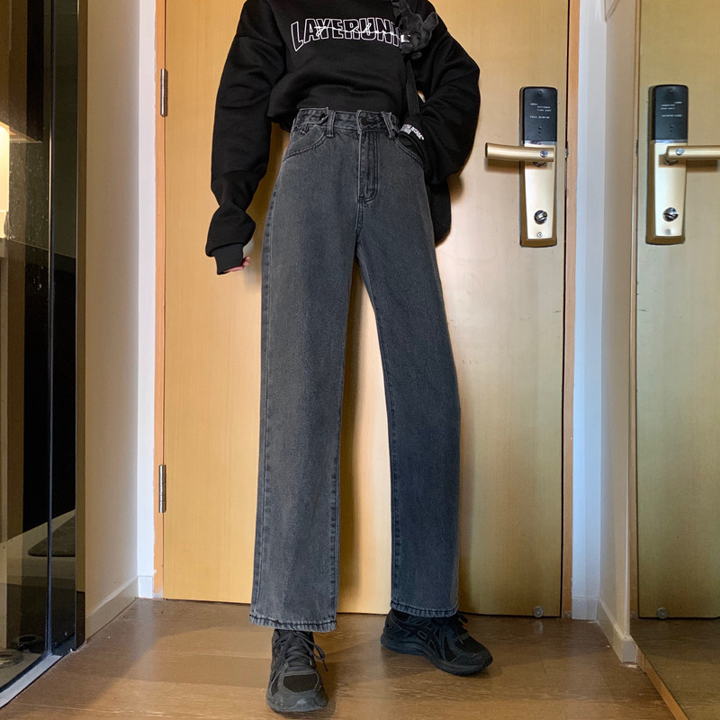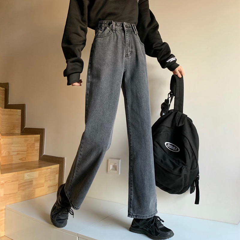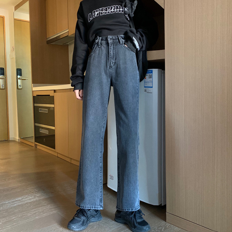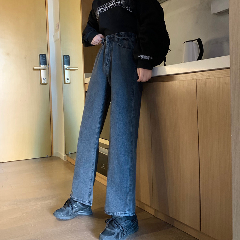 Осенние прямые свободные джинсы, приталенные штаны, в корейском стиле, высокая талия, большой размер