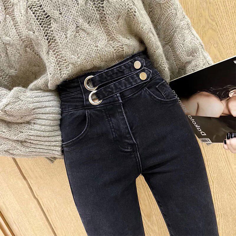 Джинсы, осенние штаны, дизайнерский карандаш, высокая талия, 2020, новая коллекция, в обтяжку