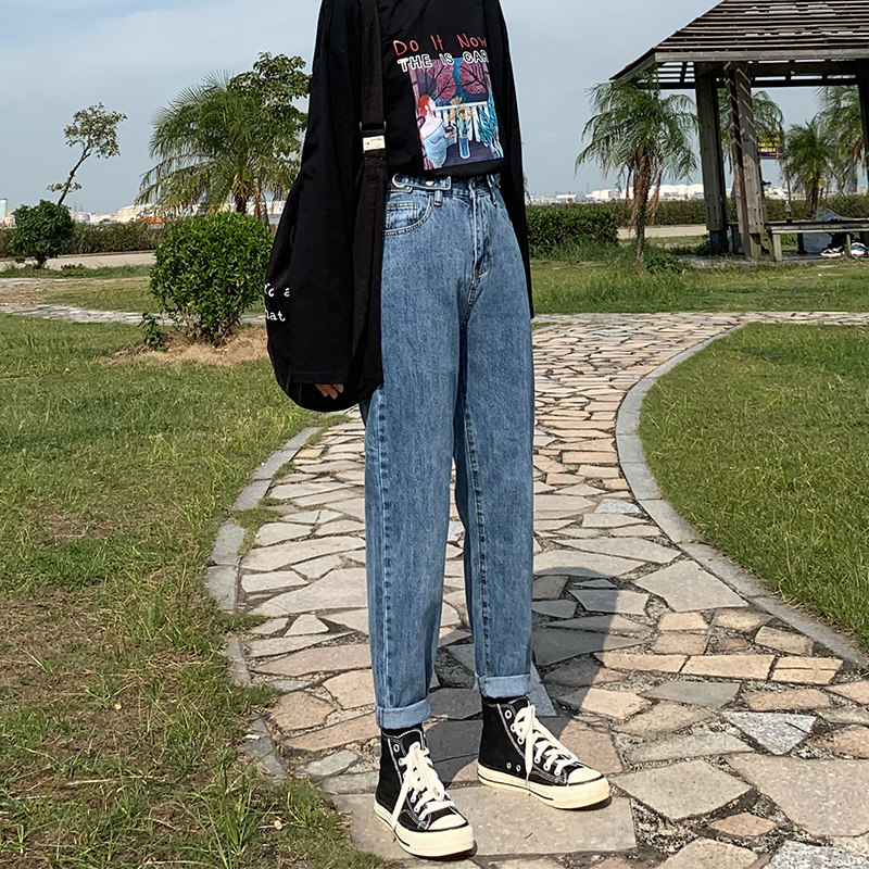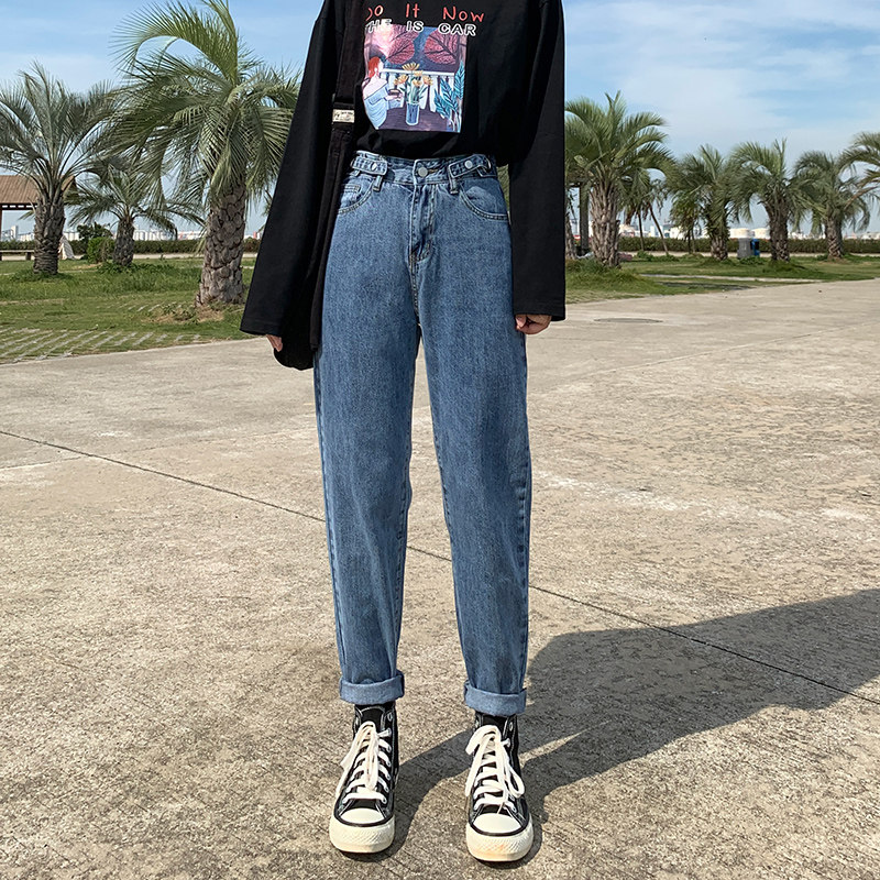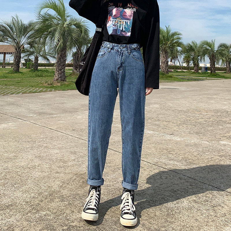 Весенние джинсы, штаны, высокая талия, 2021 года, свободный прямой крой, по фигуре