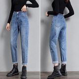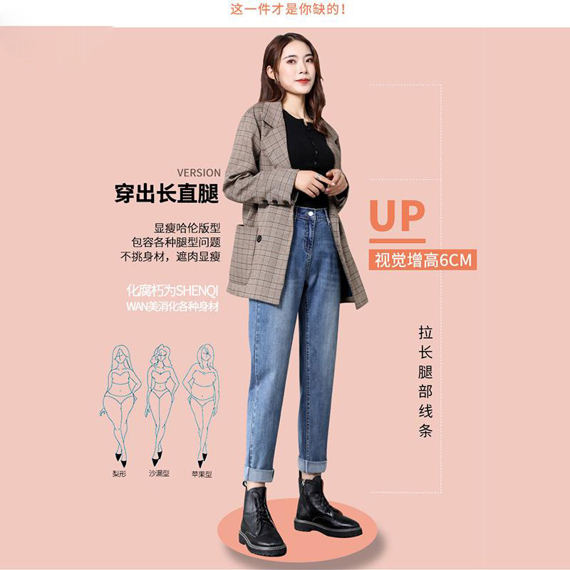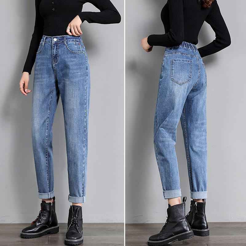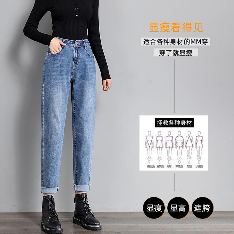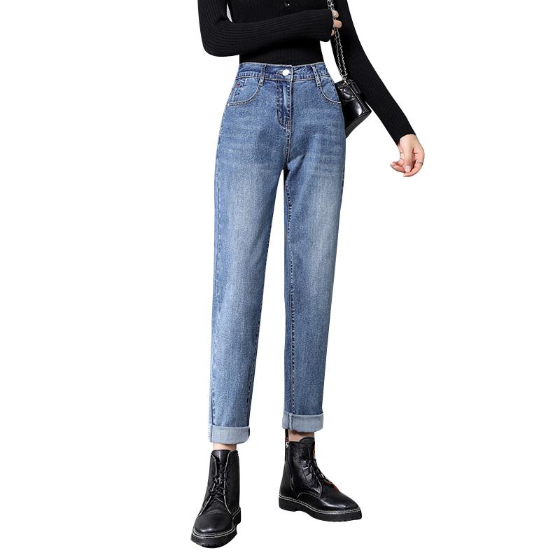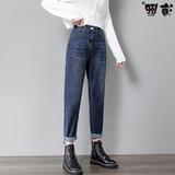 Штаны, демисезонные флисовые джинсы, высокая талия, свободный крой, в корейском стиле, по фигуре, большой размер