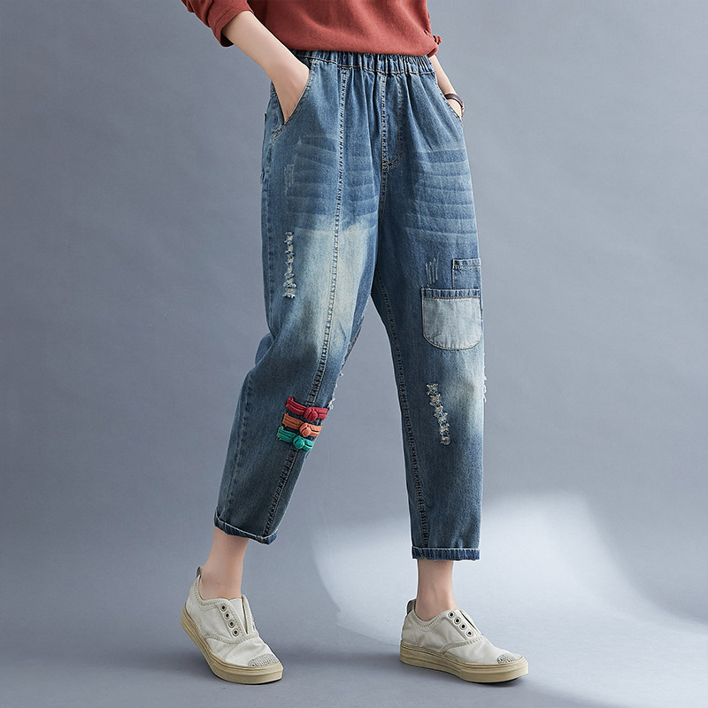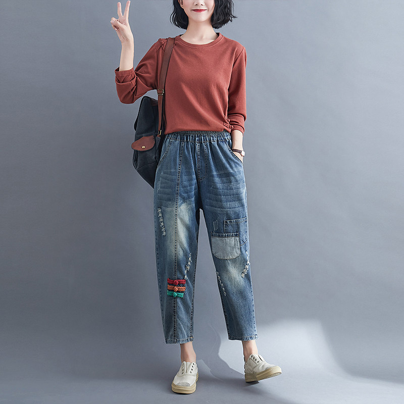 Осенний цветовой круг, джинсы, штаны, большой размер, высокая талия, по фигуре, свободный крой
