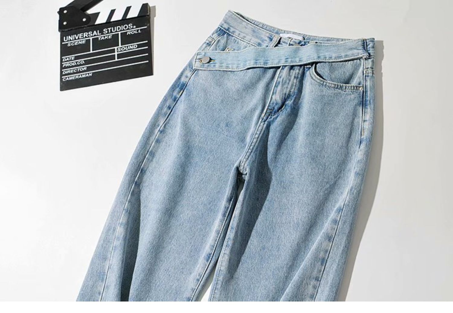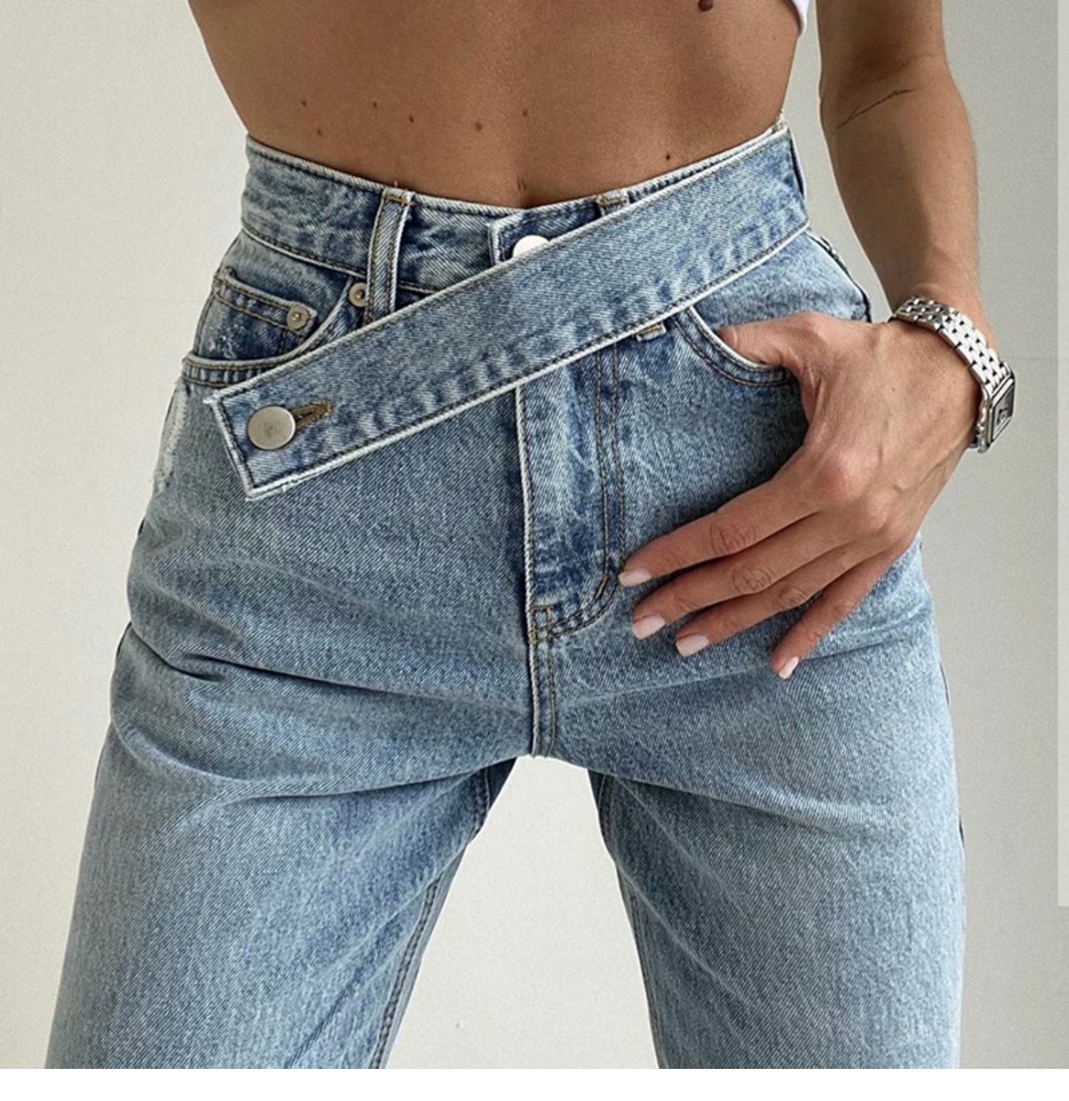 Небольшой дизайнерский ремень, штаны, джинсы, свободный прямой крой, высокая талия