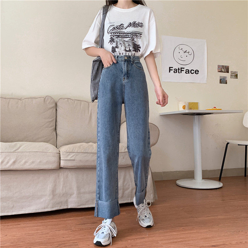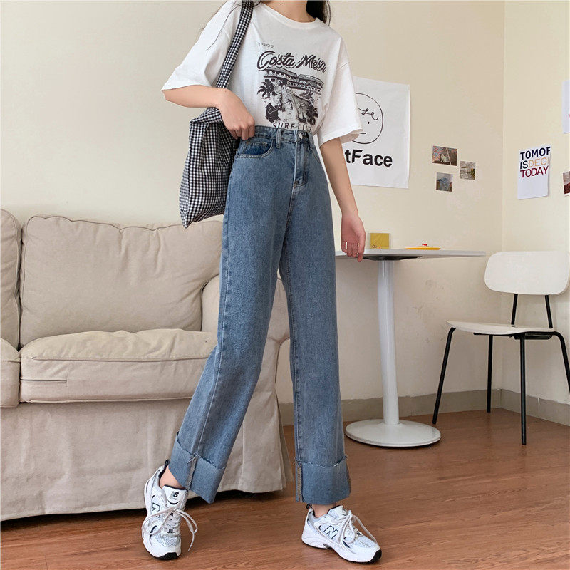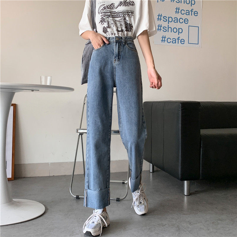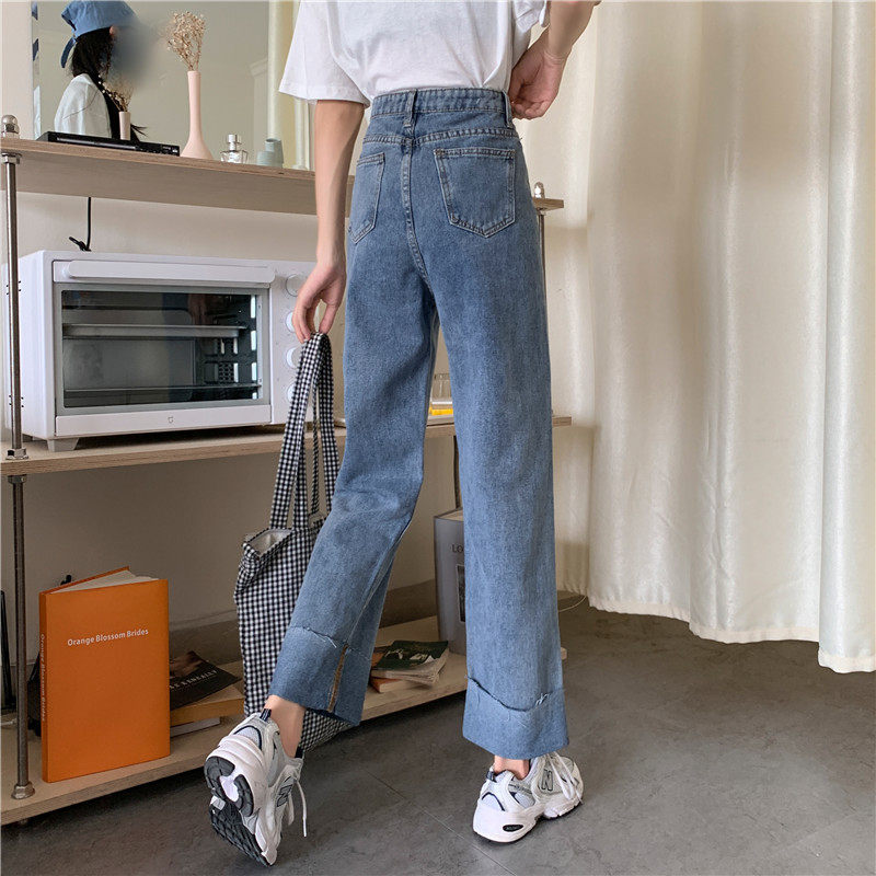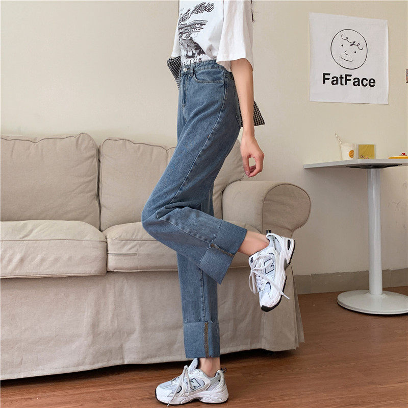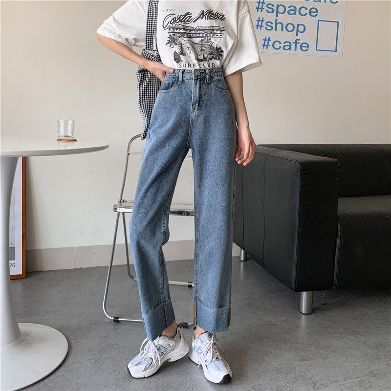 Джинсы, осенние штаны, высокая талия, оверсайз, большой размер, свободный прямой крой