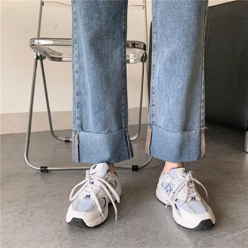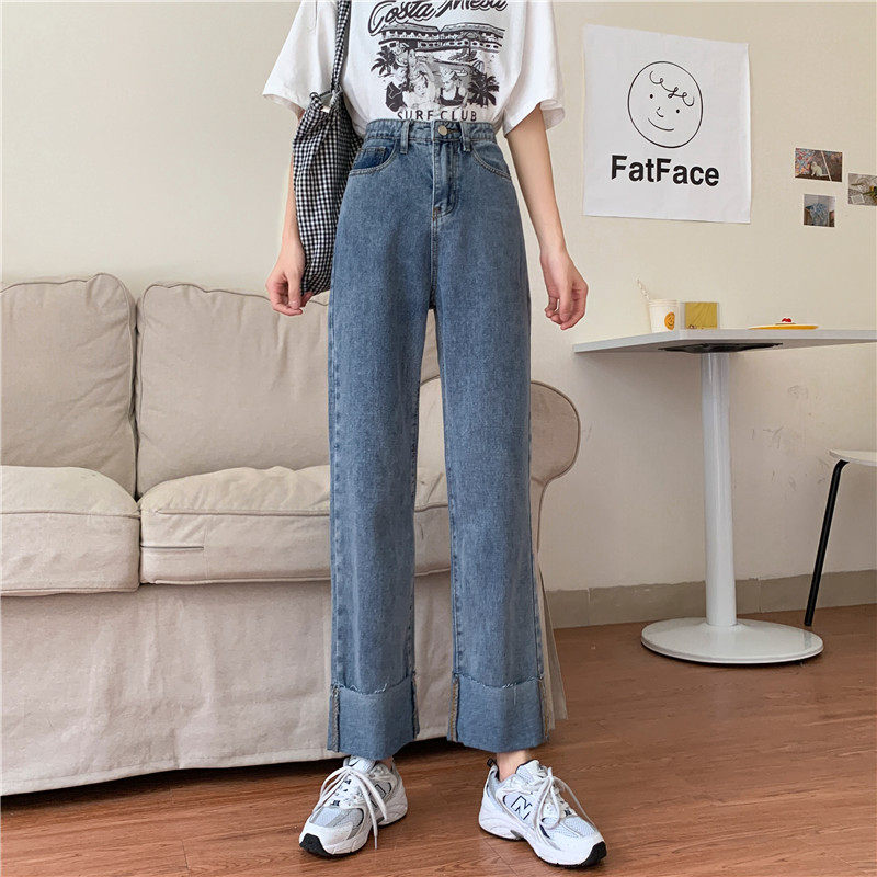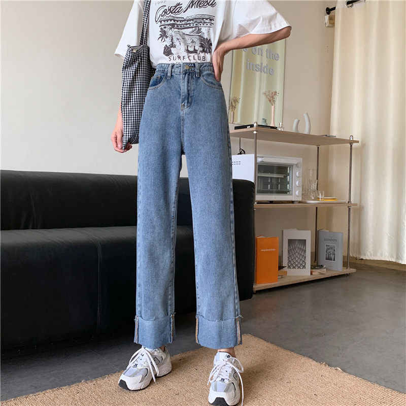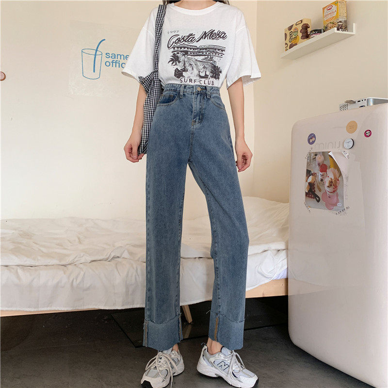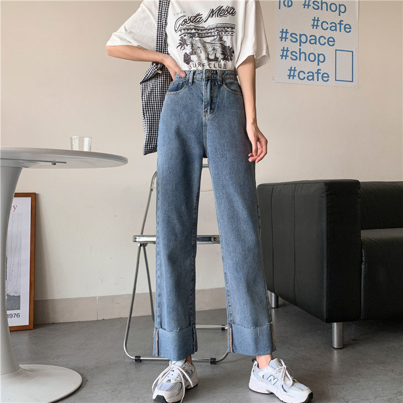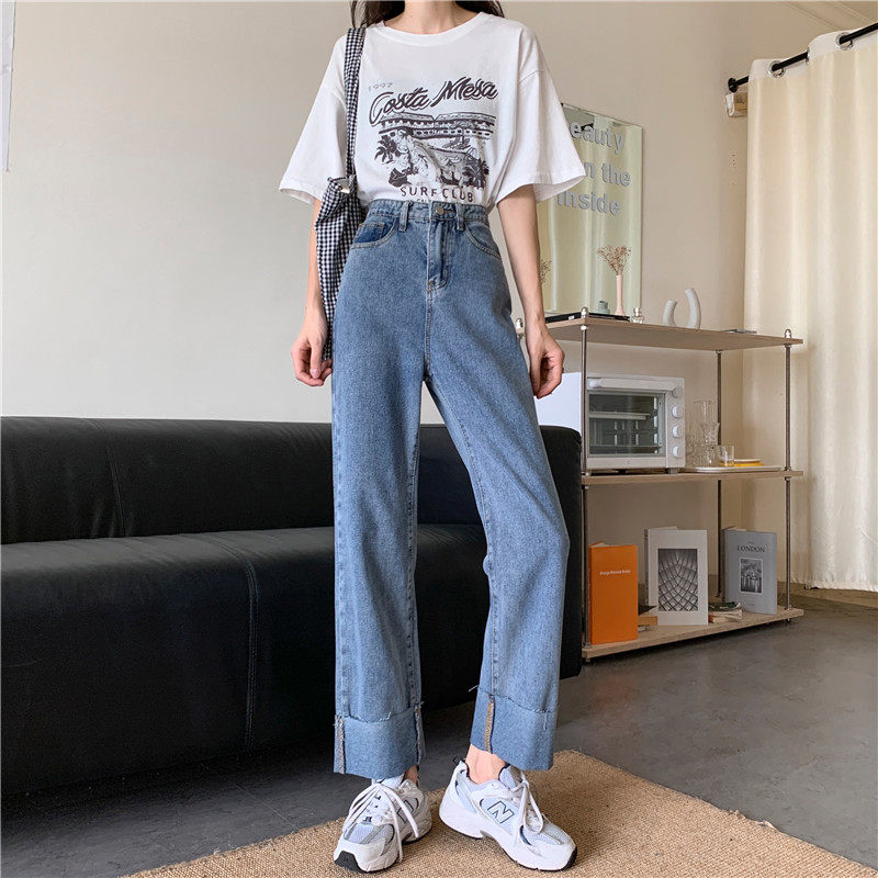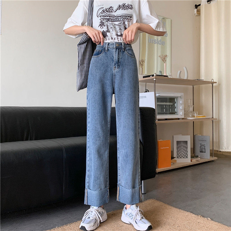 Джинсы, осенние штаны, высокая талия, оверсайз, большой размер, свободный прямой крой