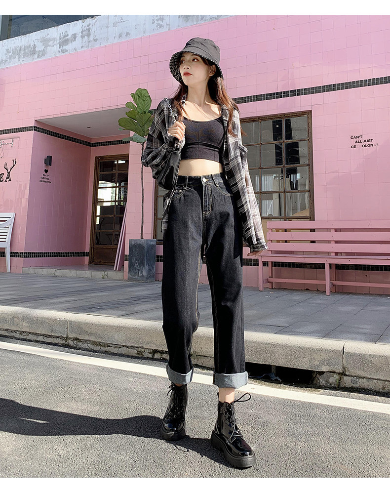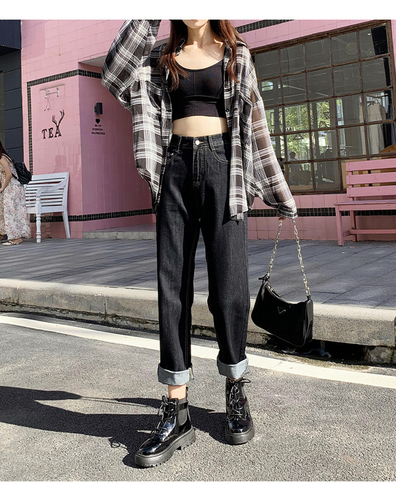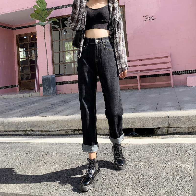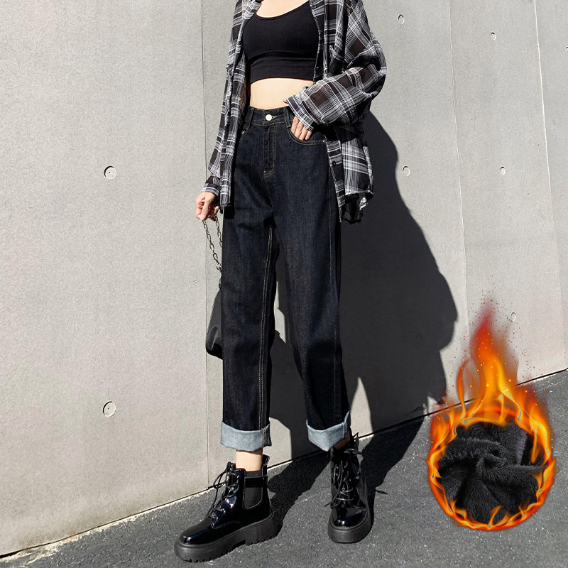 Демисезонные прямые свободные джинсы, флисовые приталенные штаны, 2020 года, оверсайз, высокая талия, свободный крой