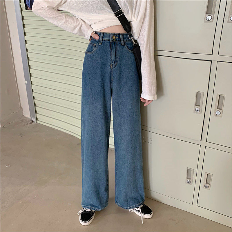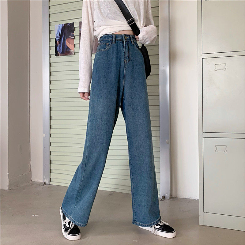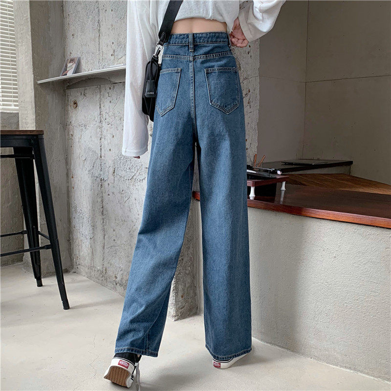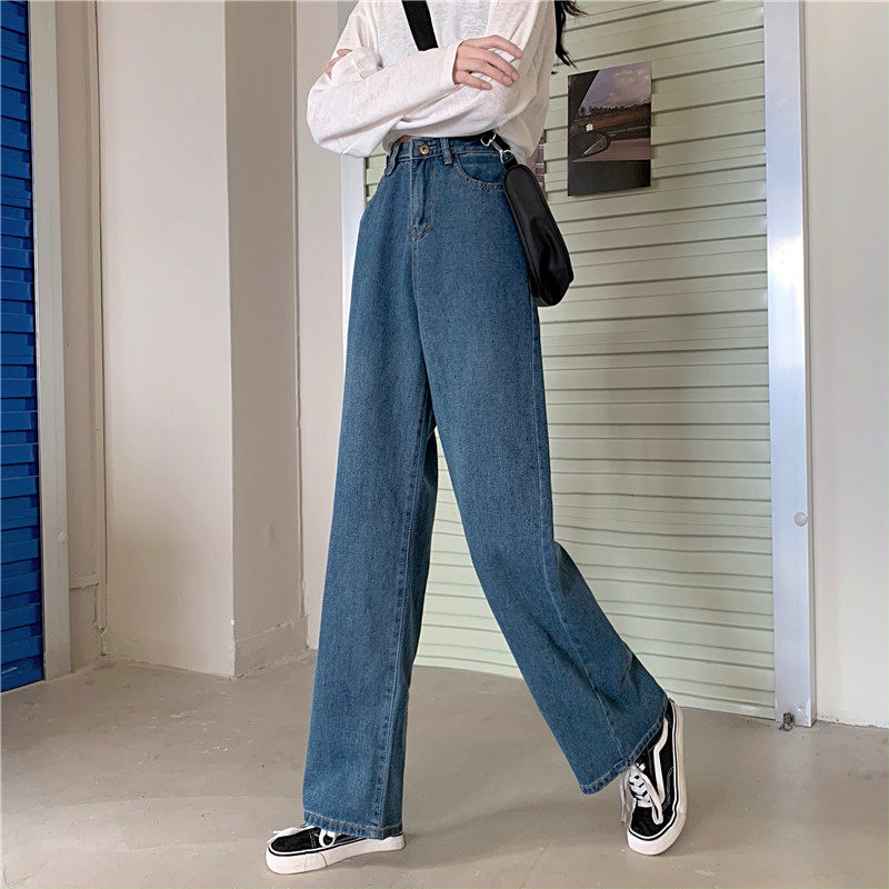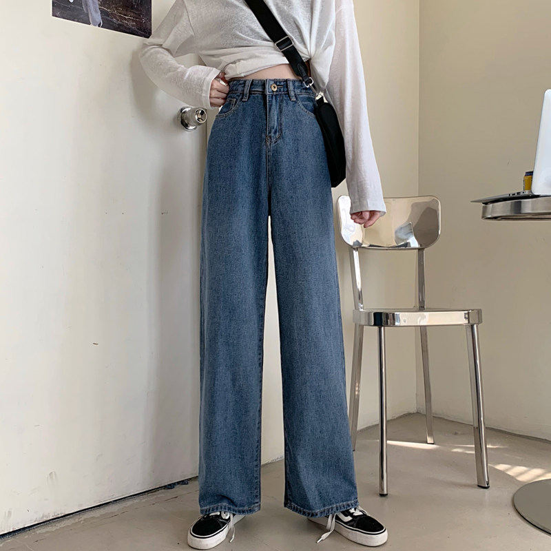 Осенние джинсы, штаны, высокая талия, в корейском стиле, оверсайз, большой размер, свободный прямой крой