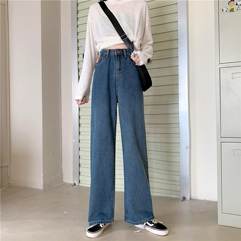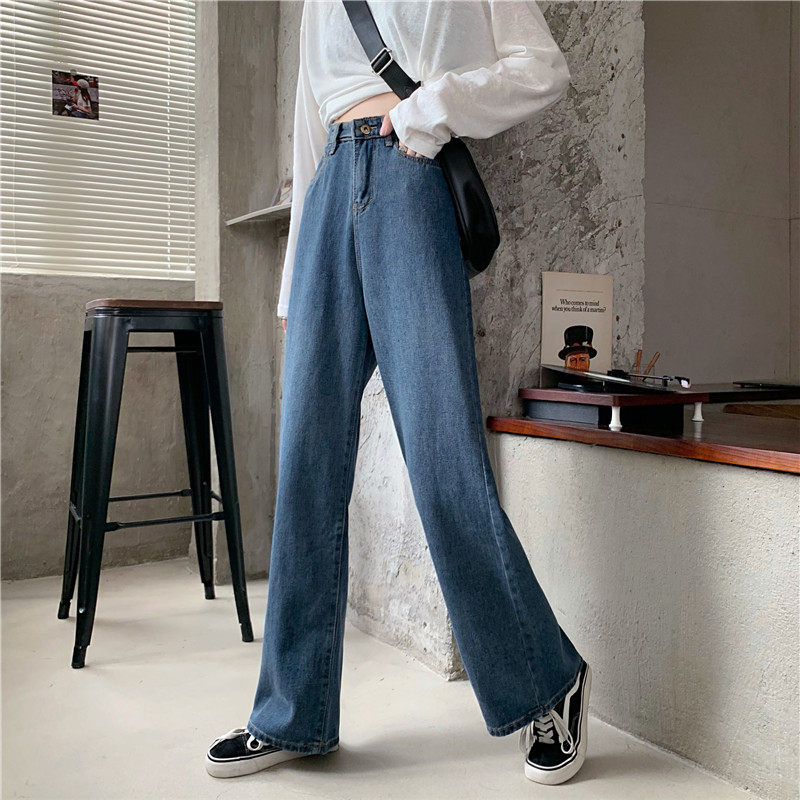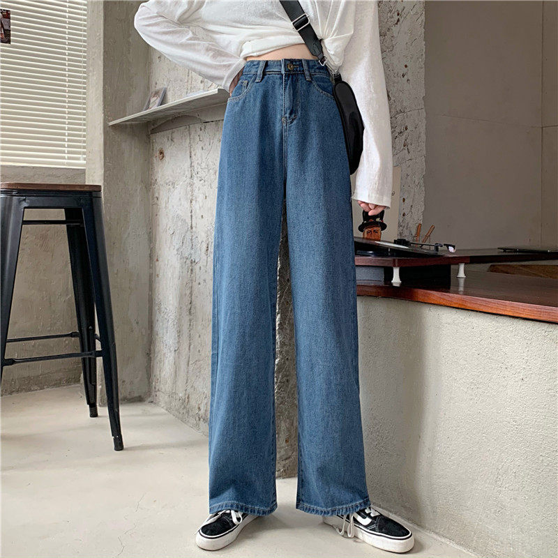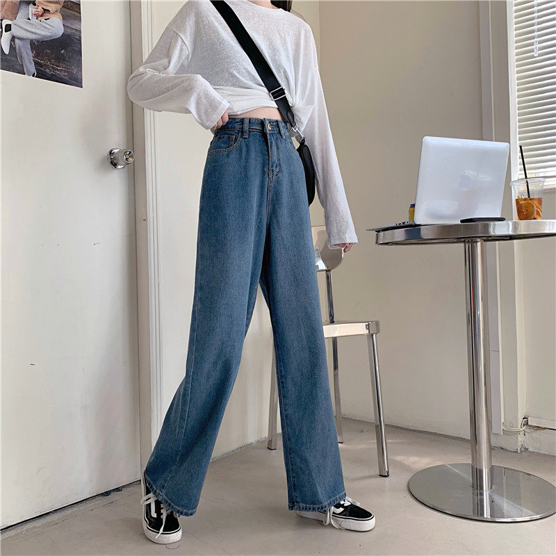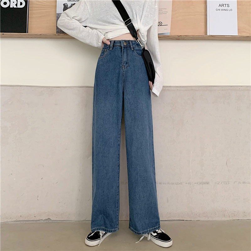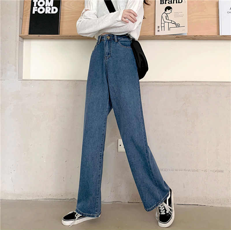 Осенние джинсы, штаны, высокая талия, в корейском стиле, оверсайз, большой размер, свободный прямой крой