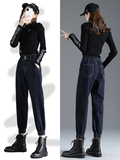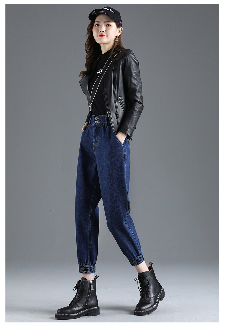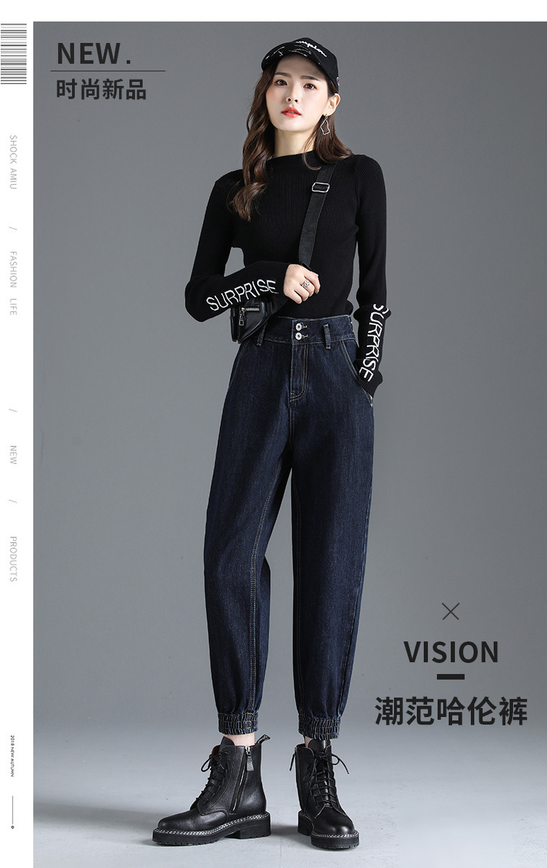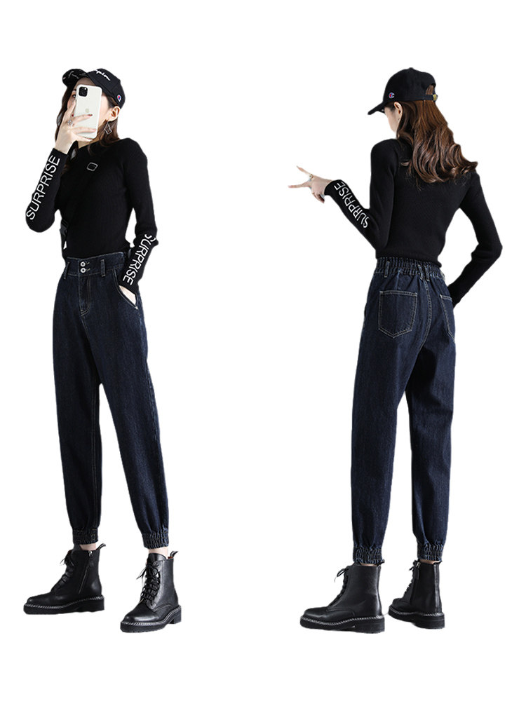 Осенние штаны, джинсы, высокая талия, свободный крой