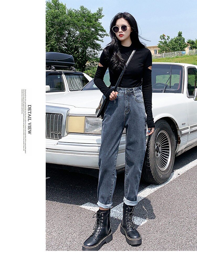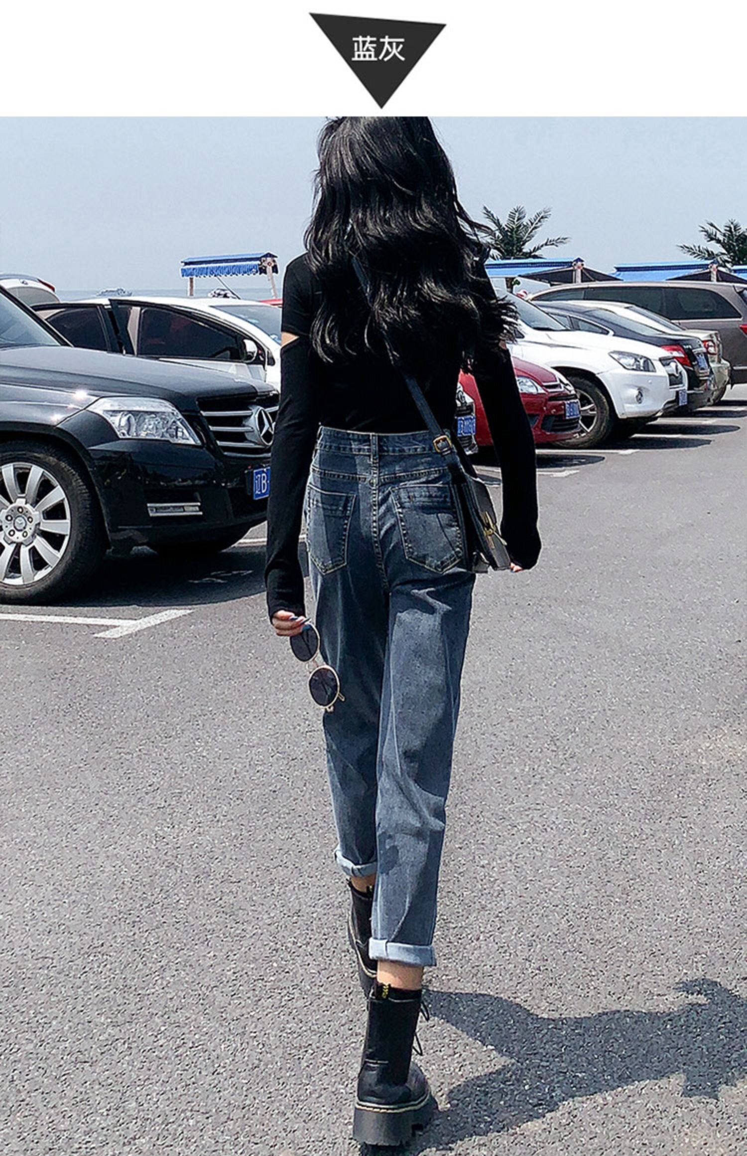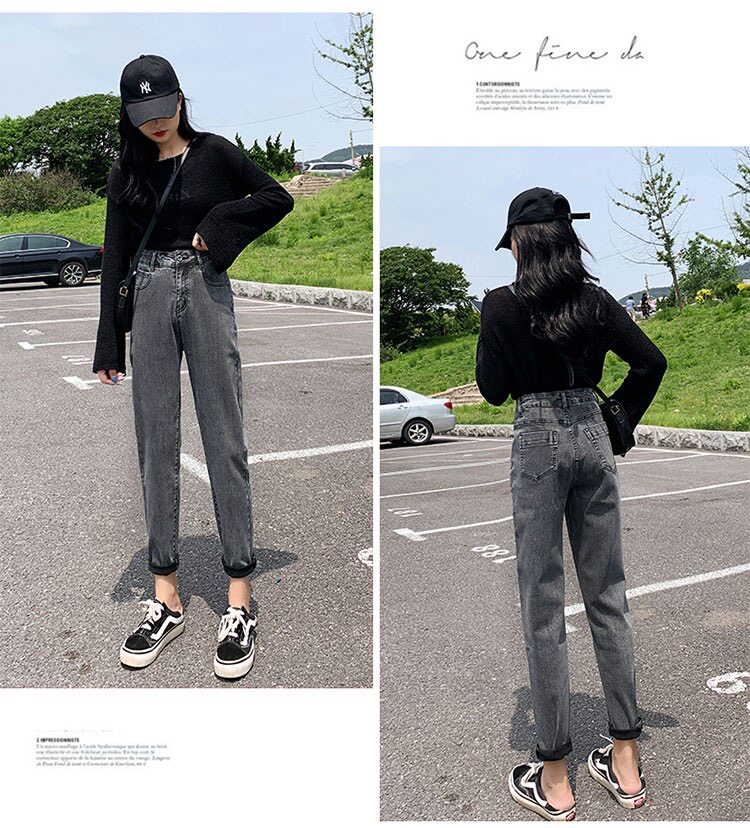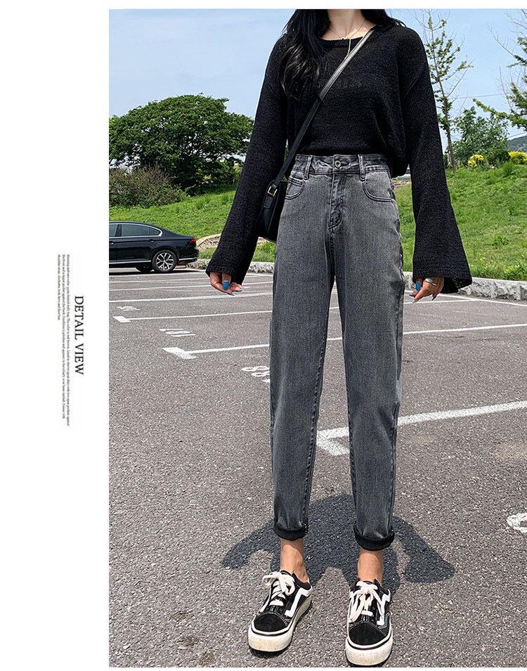 Джинсы, приталенные эластичные осенние штаны, высокая талия, 2023, оверсайз