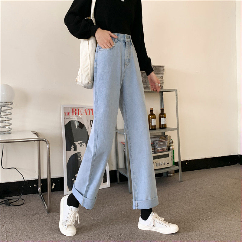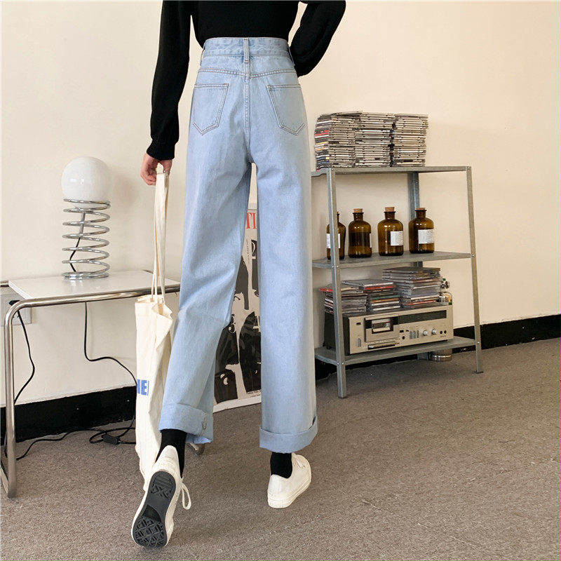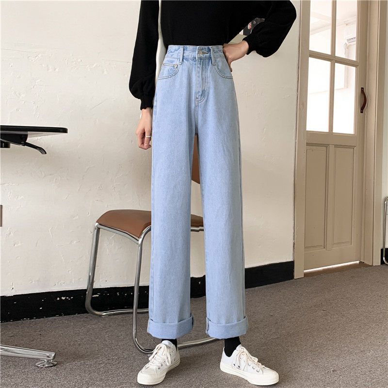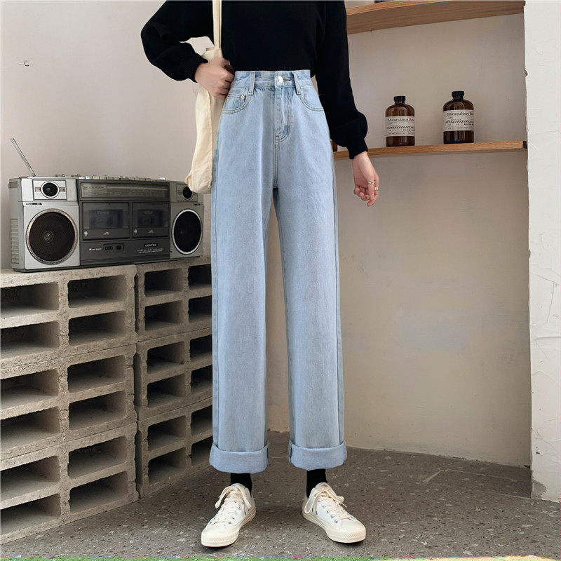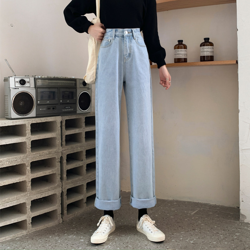 Джинсы, демисезонные штаны, 2024 года, оверсайз, высокая талия, большой размер, свободный прямой крой