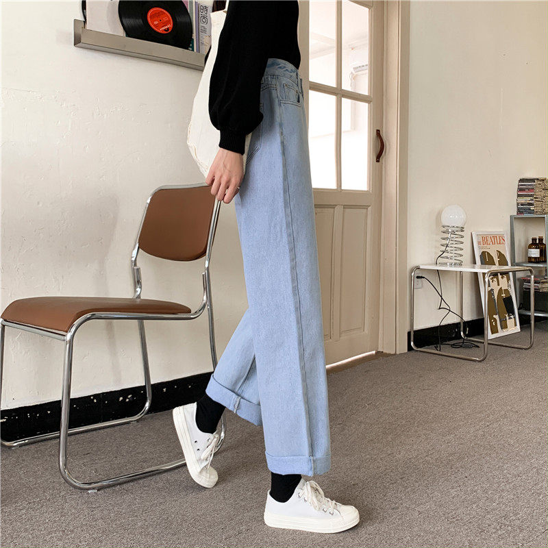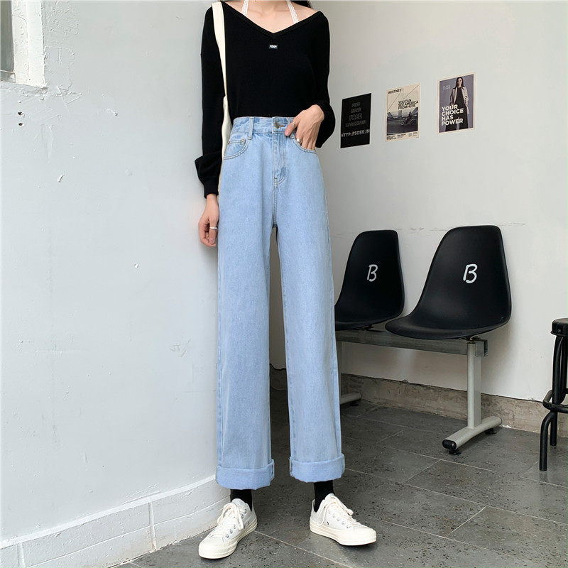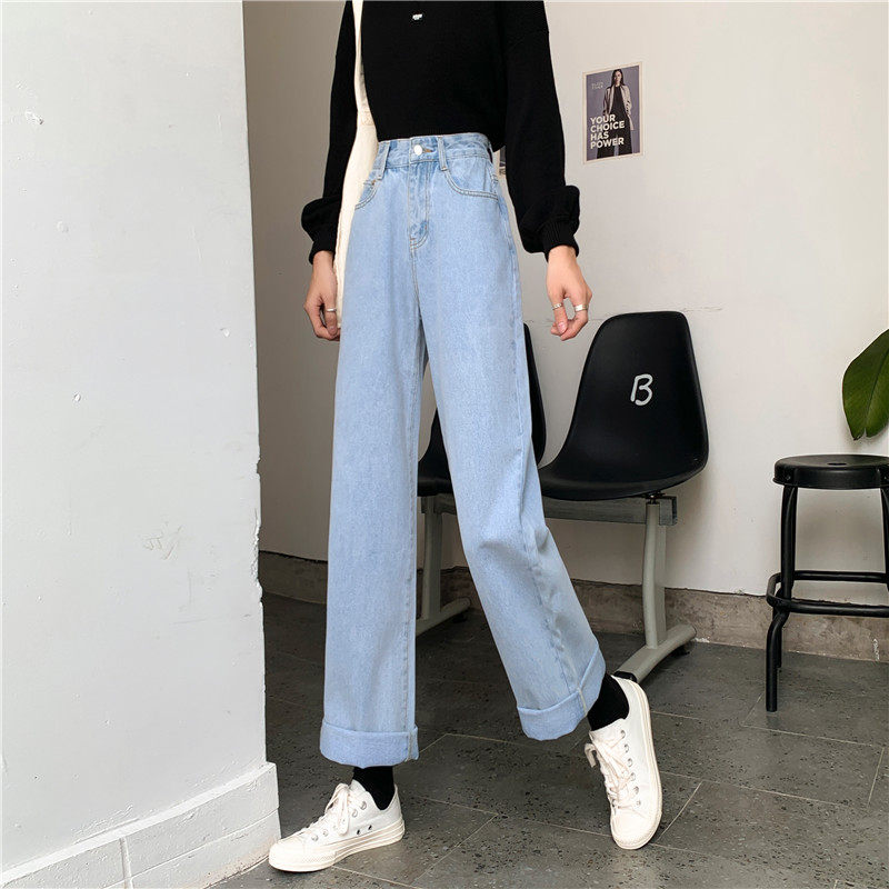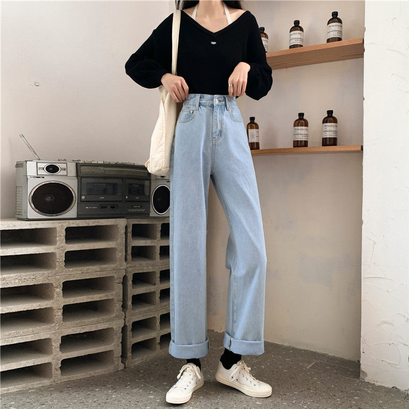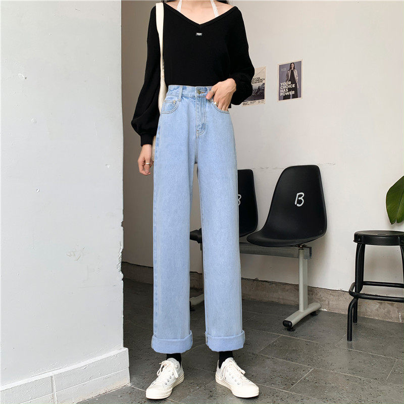 Джинсы, демисезонные штаны, 2024 года, оверсайз, высокая талия, большой размер, свободный прямой крой