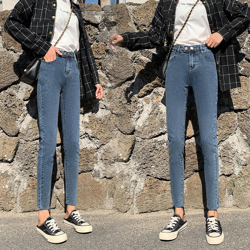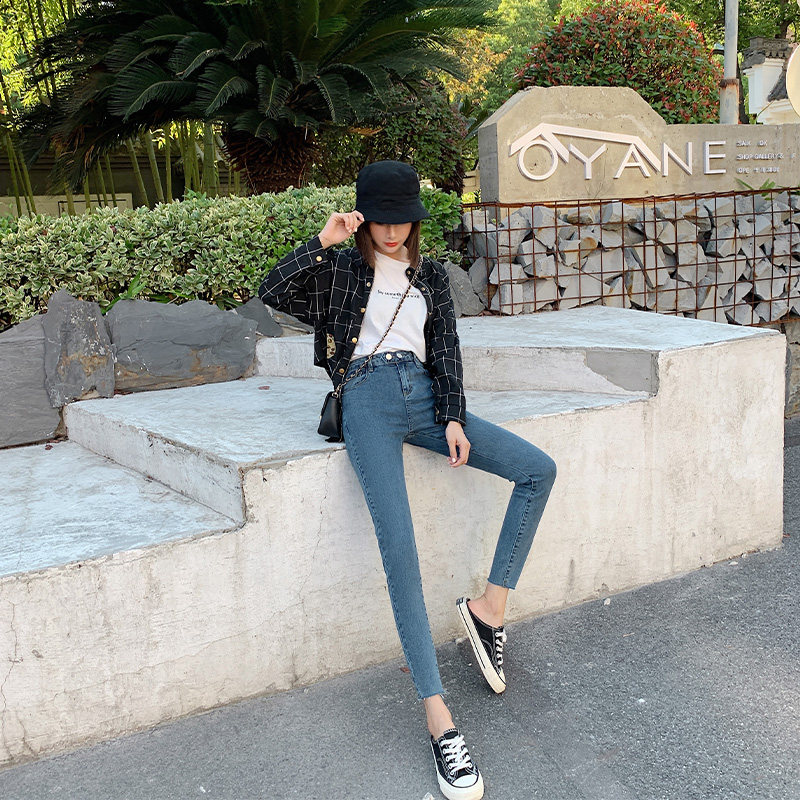 Карандаш, штаны, приталенные синие эластичные джинсы, коллекция 2022, в обтяжку