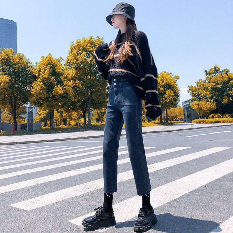 Весенние прямые свободные джинсы, штаны, высокая талия, коллекция 2022, оверсайз, свободный крой
