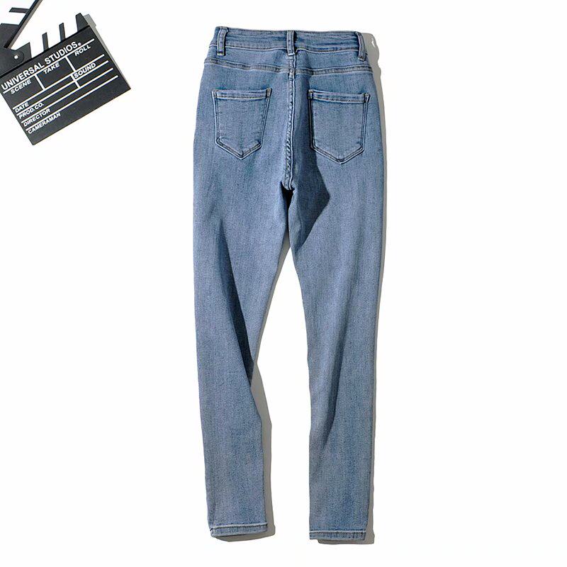 Осенние базовые джинсы, эластичные штаны, карандаш, 2020, новая коллекция, высокая талия, по фигуре, в обтяжку