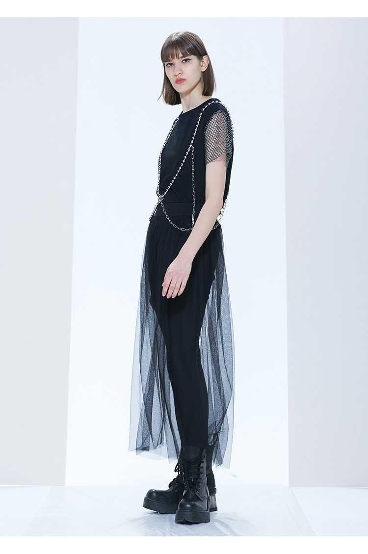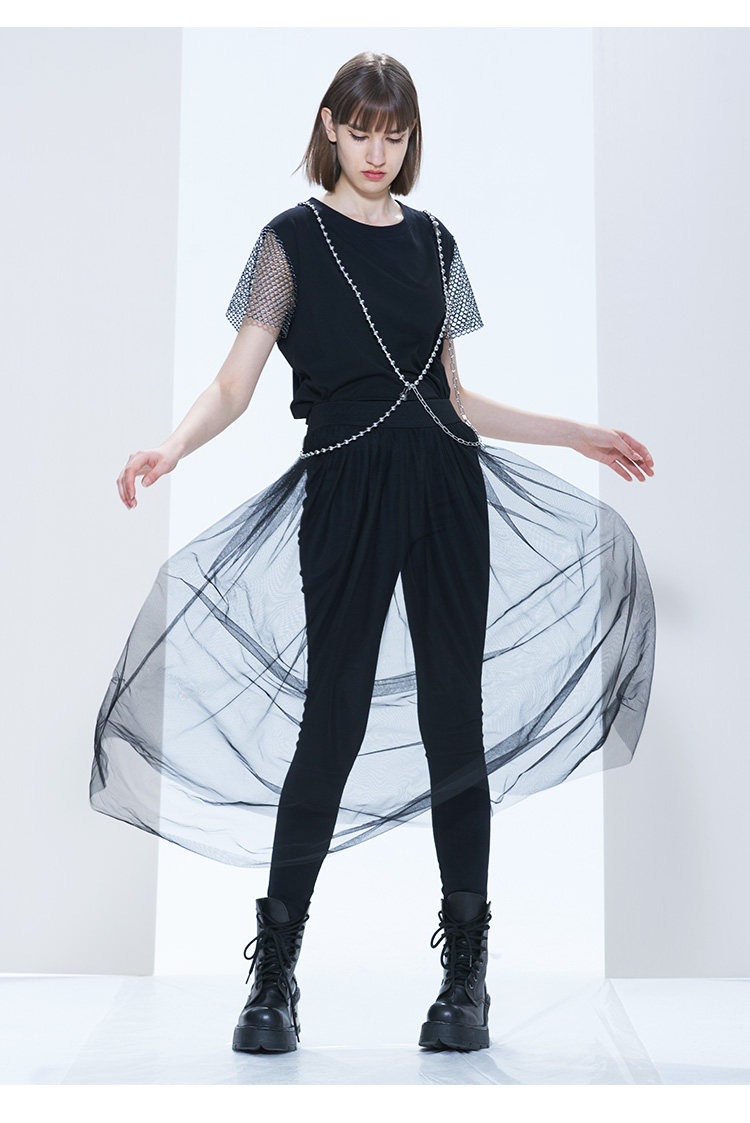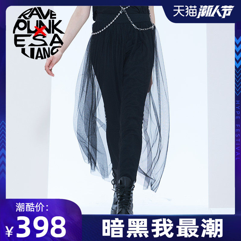 PUNKRAVE x Esa Liang совместная модель, темные джинсы с эластичной резинкой на талии, повседневная сетчатая юбка, брюки, выглядят стройными
