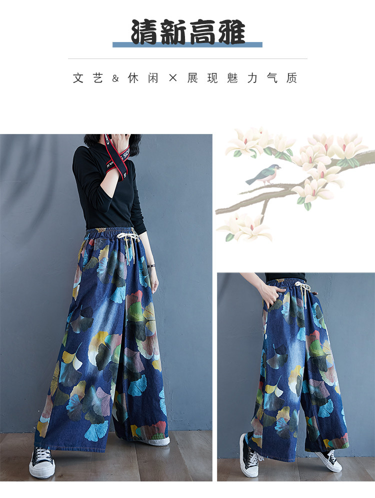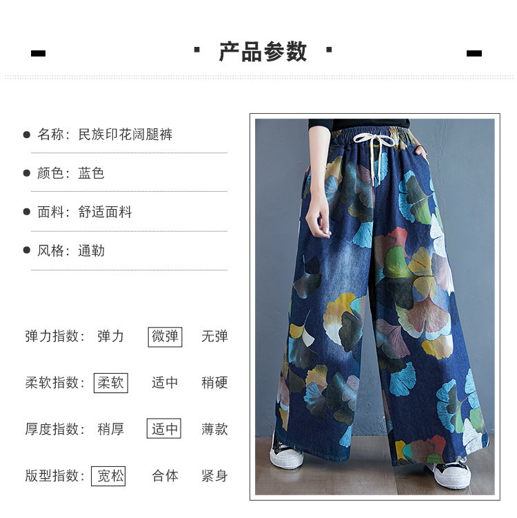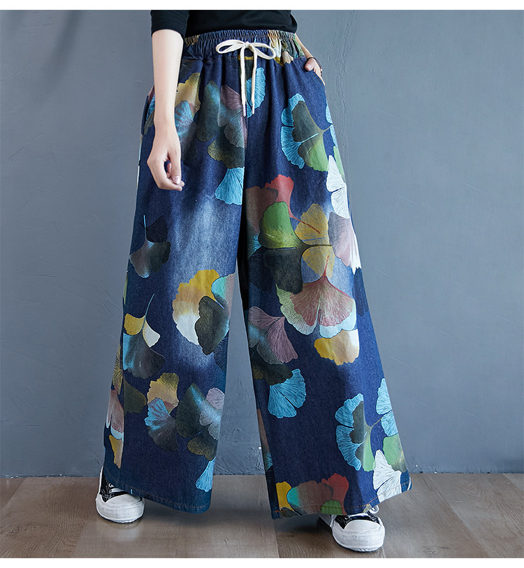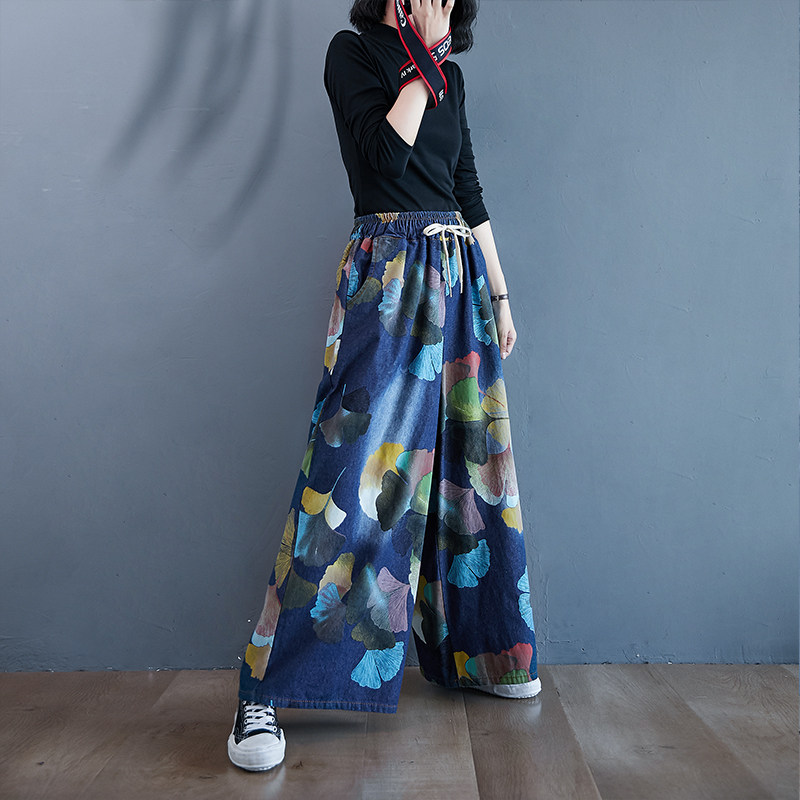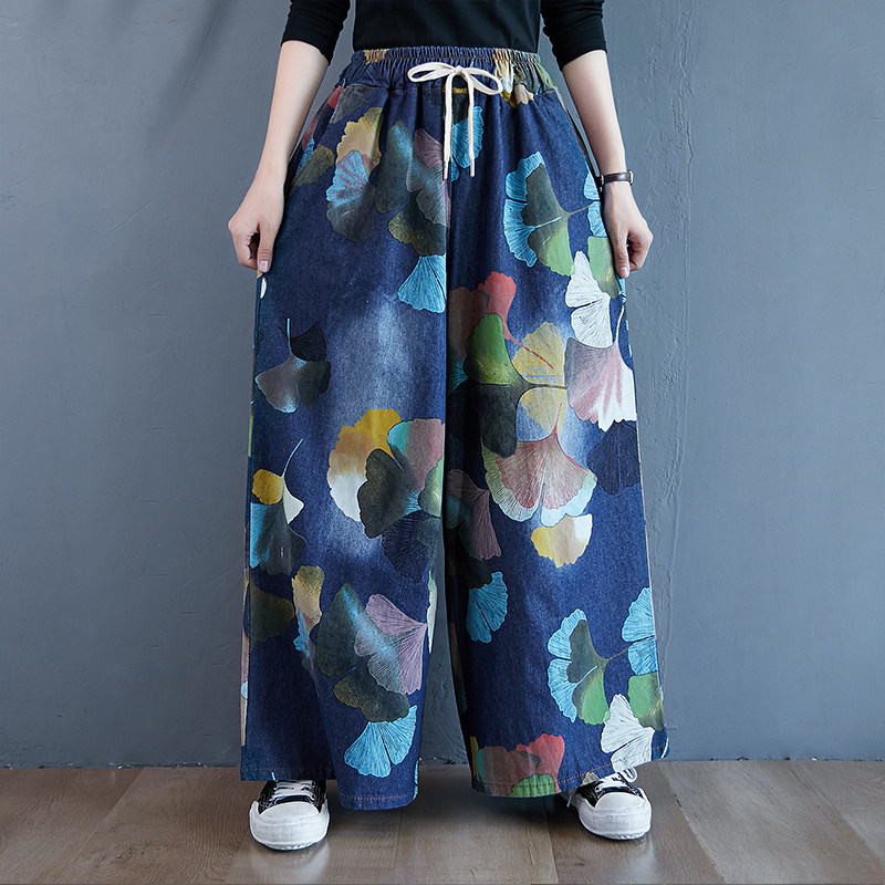 Ретро этнические джинсы, штаны, юбка, этнический стиль, в западном стиле, эластичная талия, большой размер