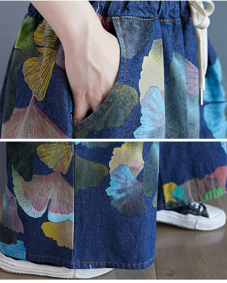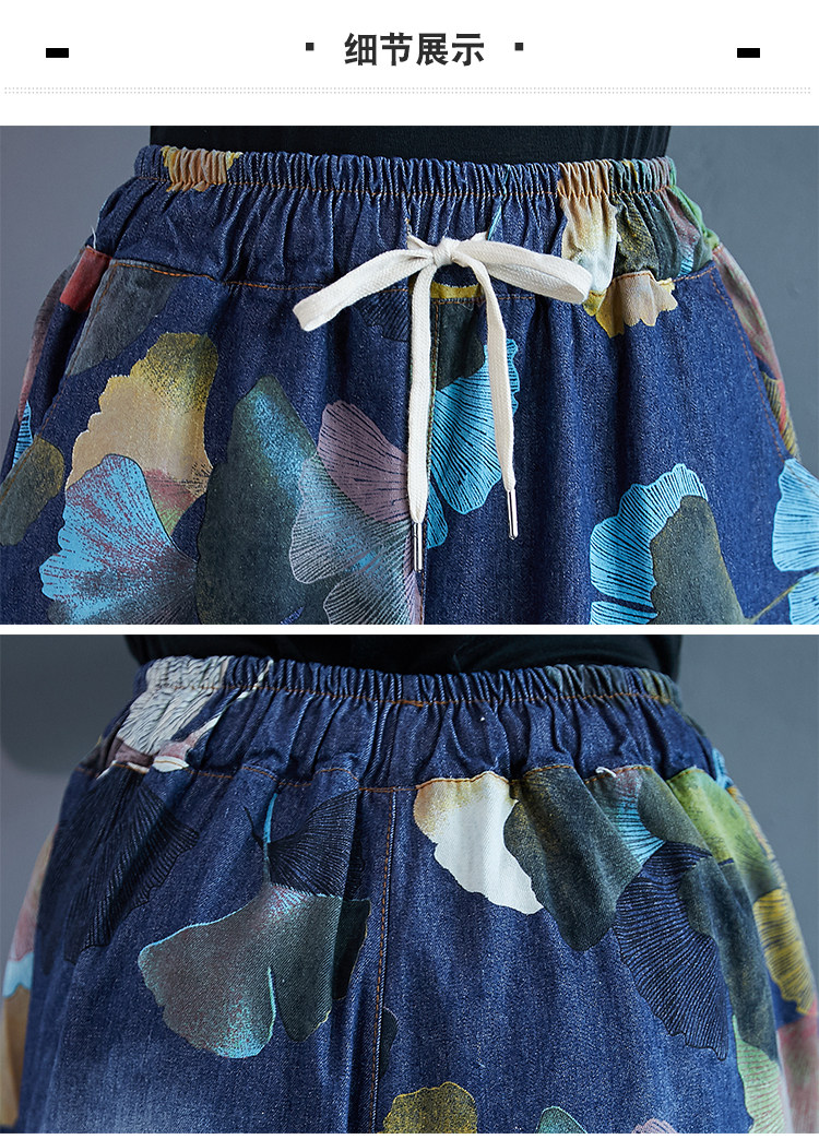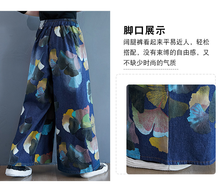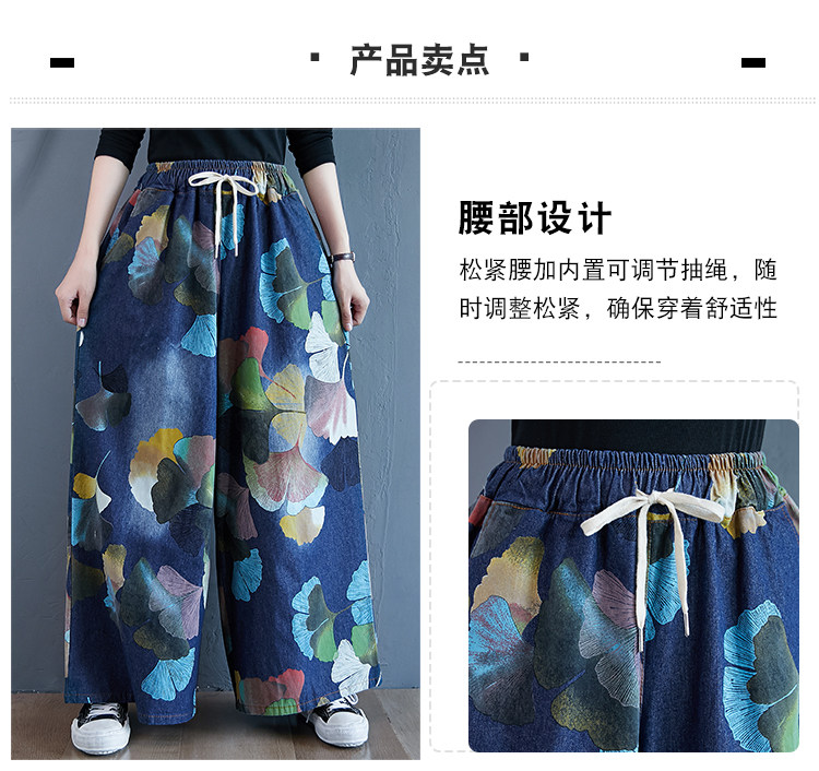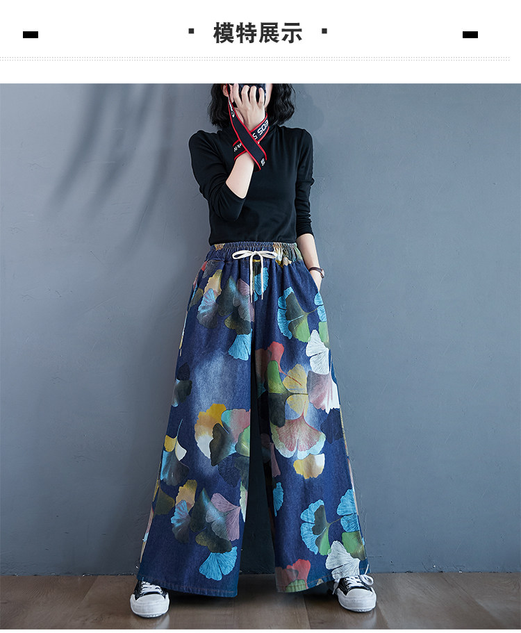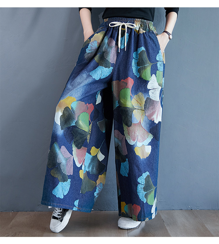 Ретро этнические джинсы, штаны, юбка, этнический стиль, в западном стиле, эластичная талия, большой размер