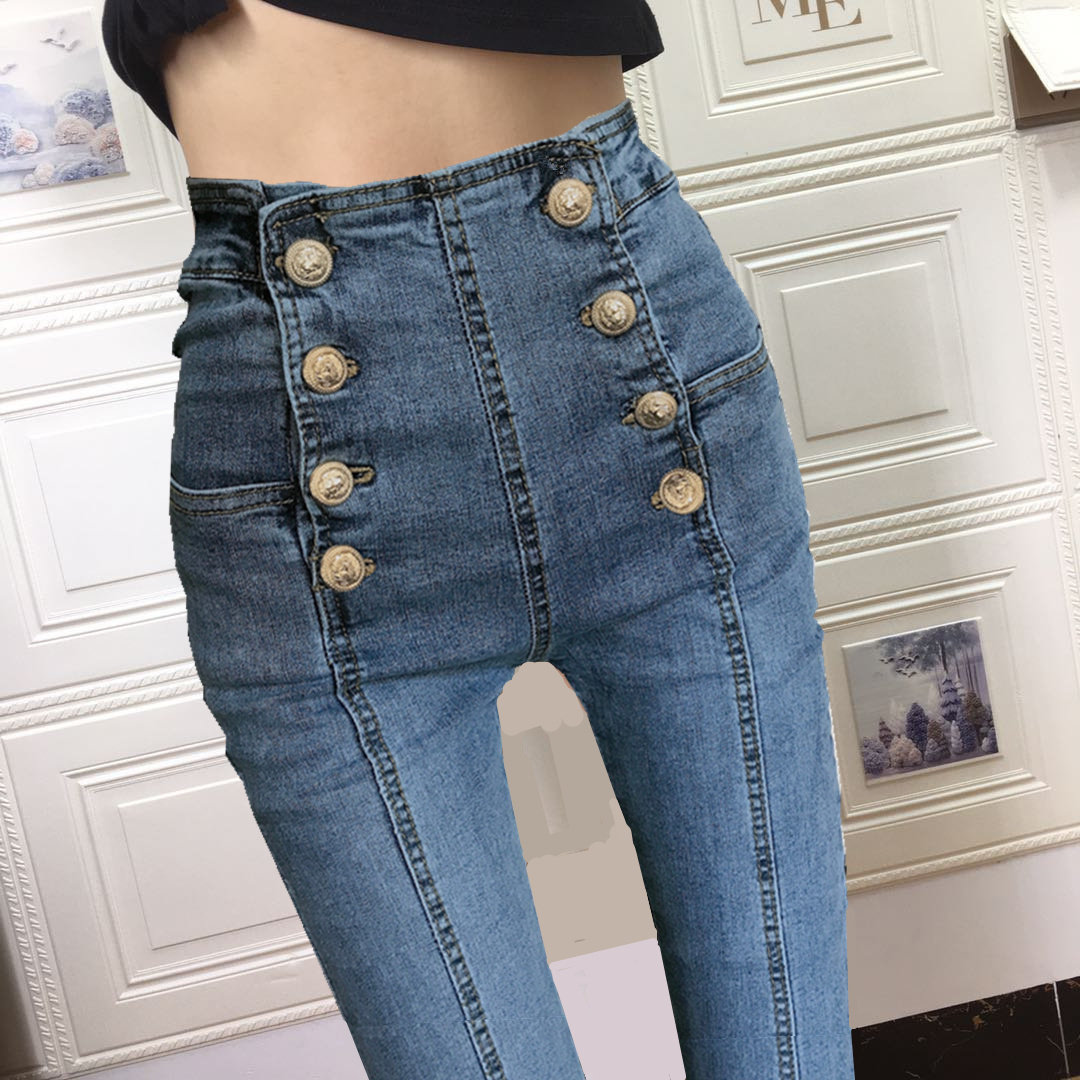 Демисезонные джинсы, штаны, модный эластичный утягивающий пояс на талию, карандаш, в корейском стиле, высокая талия, по фигуре, в обтяжку