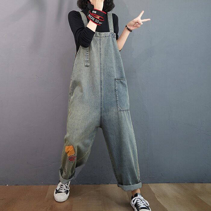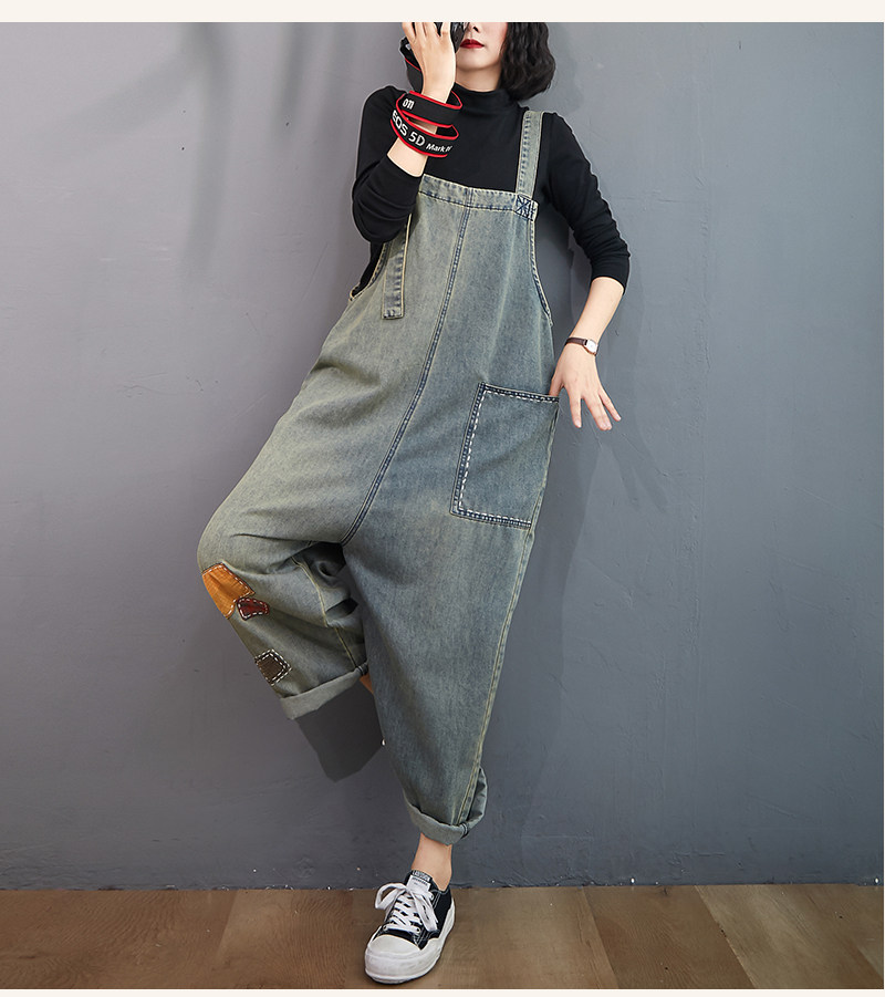 Джинсовый пластырь для отдыха, осенний комбинезон, леггинсы, штаны, большой размер, по фигуре, свободный прямой крой