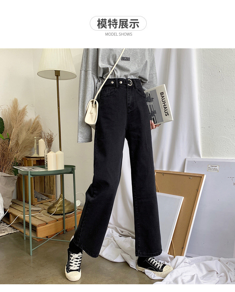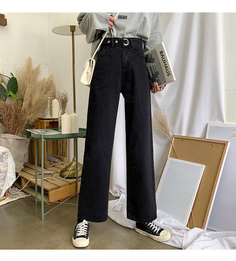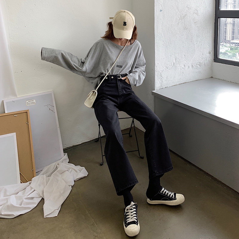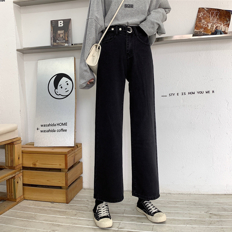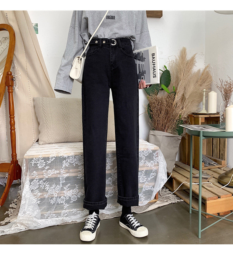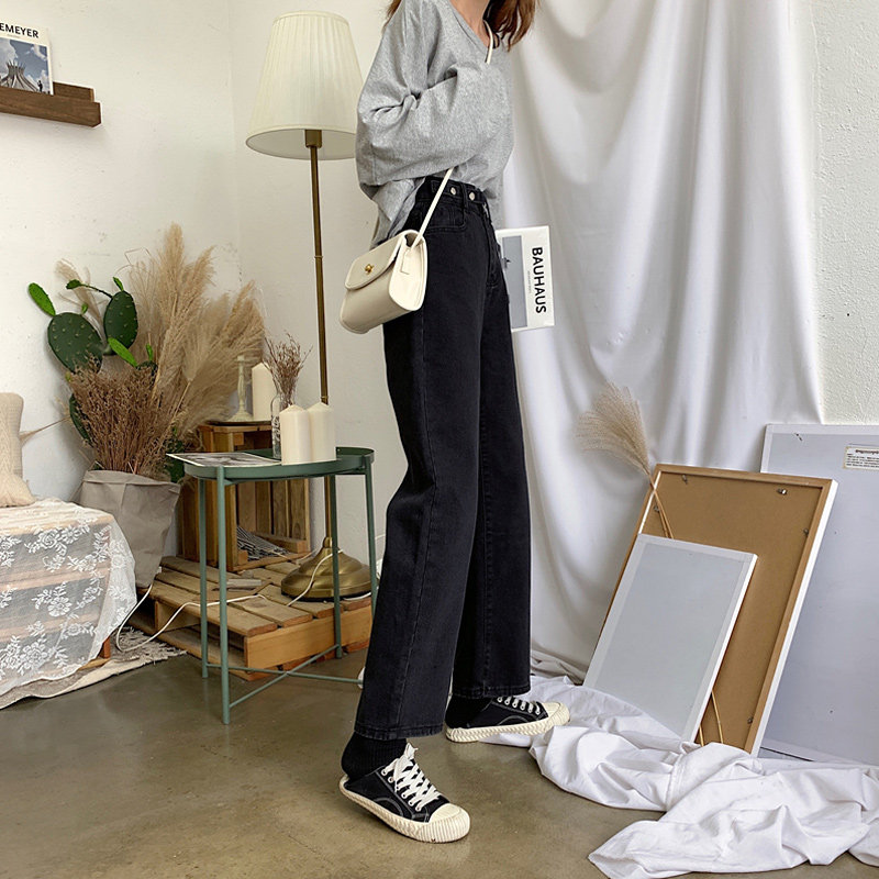 Весенние черные флисовые джинсы, штаны, коллекция 2022, по фигуре, свободный прямой крой, высокая талия