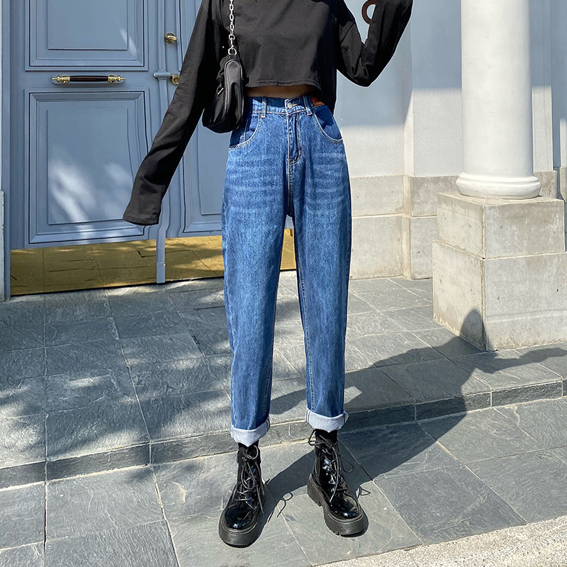 Штаны, осенние джинсы, высокая талия, свободный крой, 2020 года