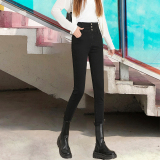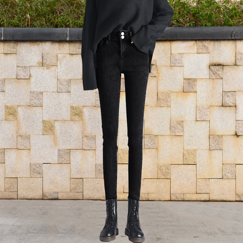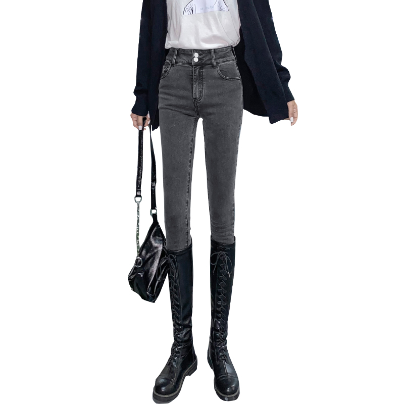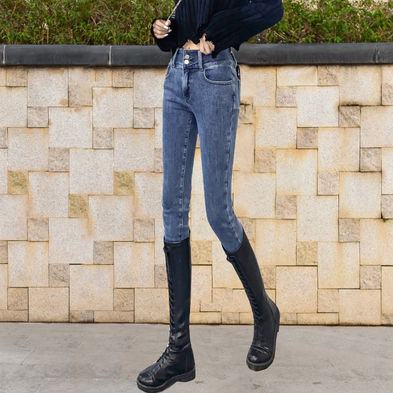 Осенние джинсы, штаны, приталенный эластичный карандаш, коррекция цвета, облегающий крой, коллекция 2023, высокая талия, в обтяжку