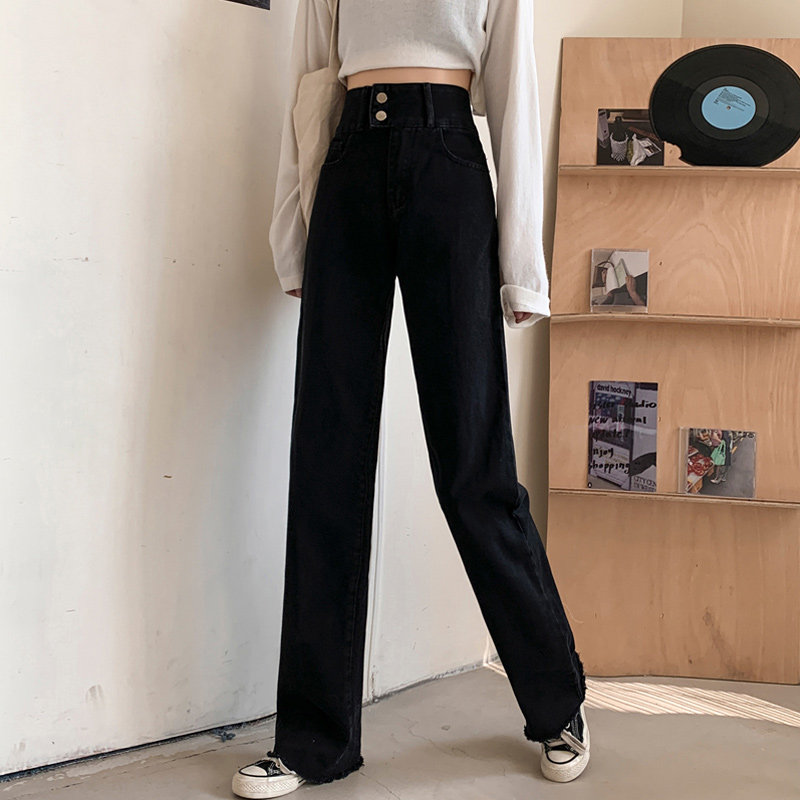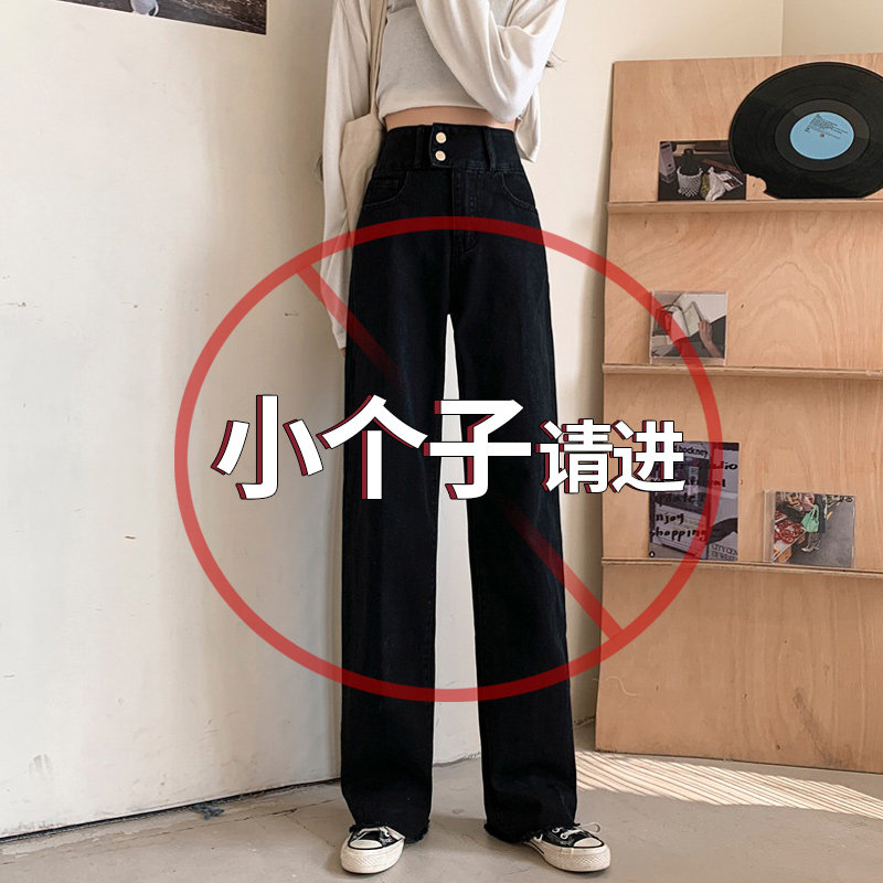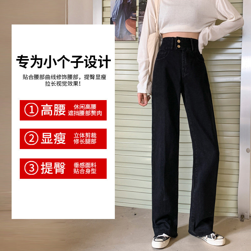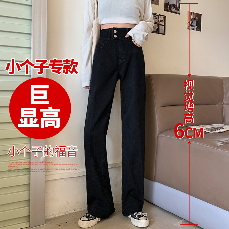 Черные джинсы, штаны, осенние, подходит для подростков, 150см, свободный прямой крой, высокая талия