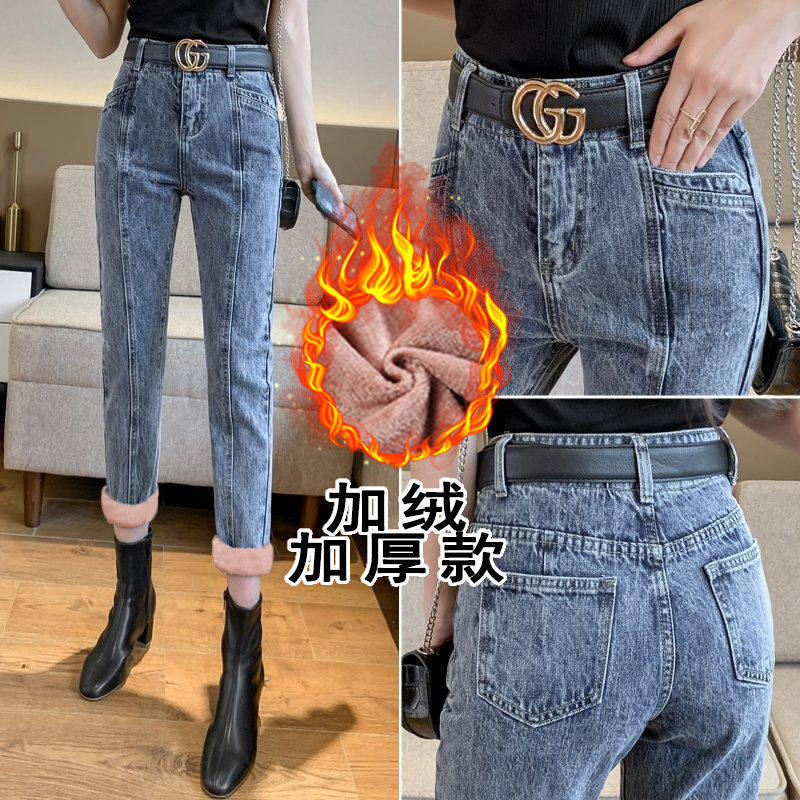 Флисовые джинсы с начесом, зимние штаны, высокая талия, 2020, популярно в интернете, свободный прямой крой, увеличенная толщина, по фигуре