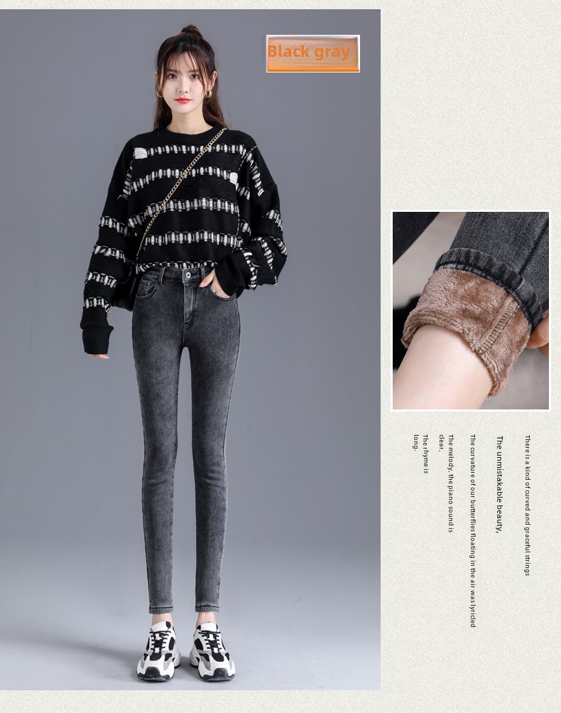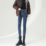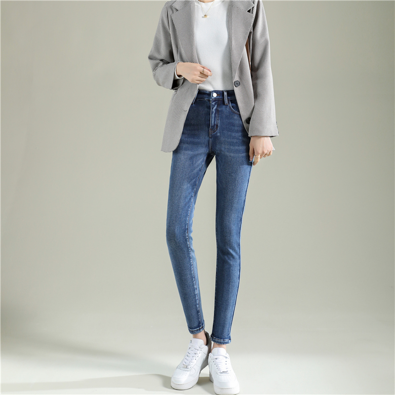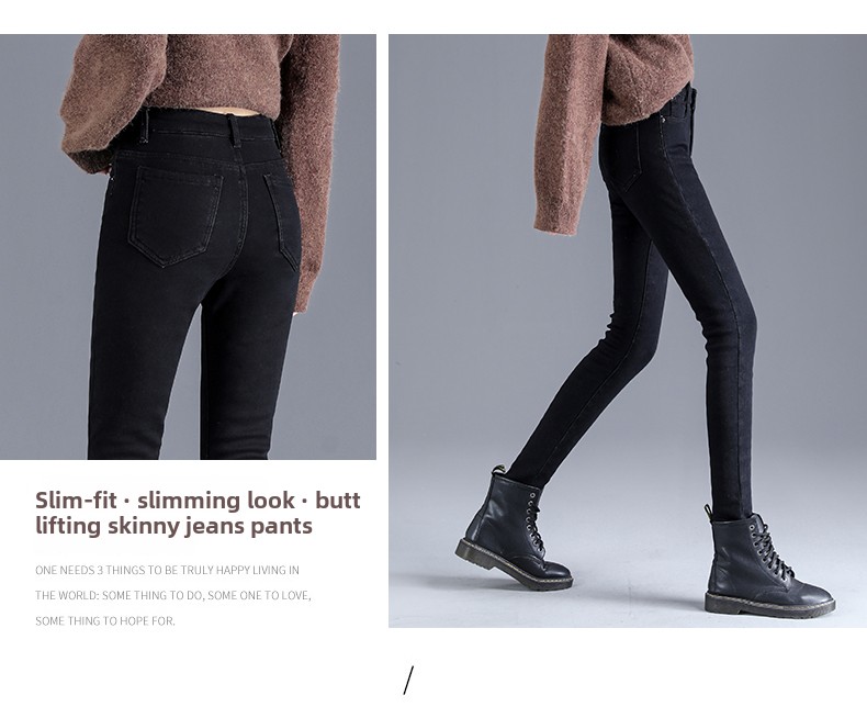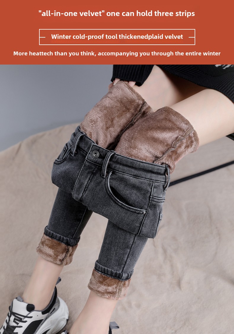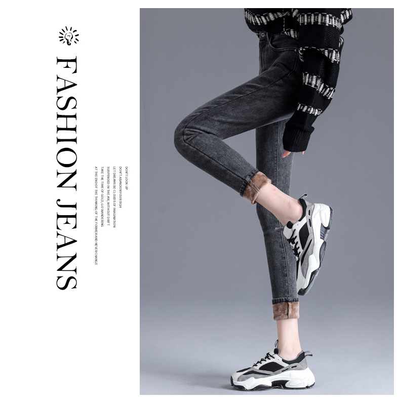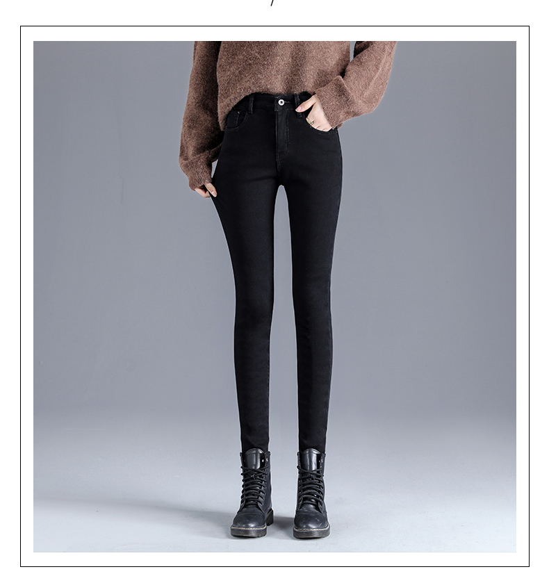 Джинсы с начесом, зимние длинные демисезонные штаны, высокая талия, большой размер
