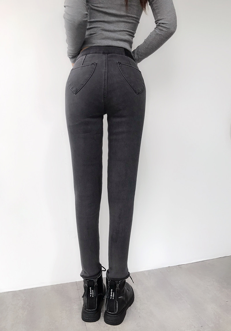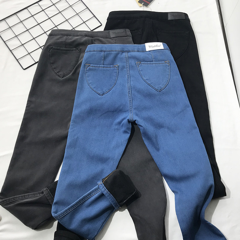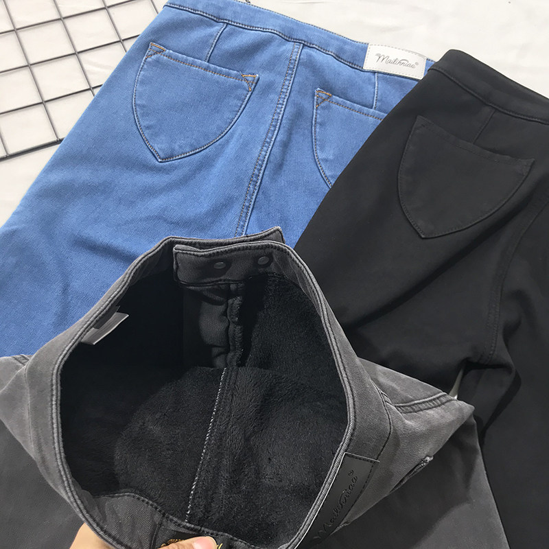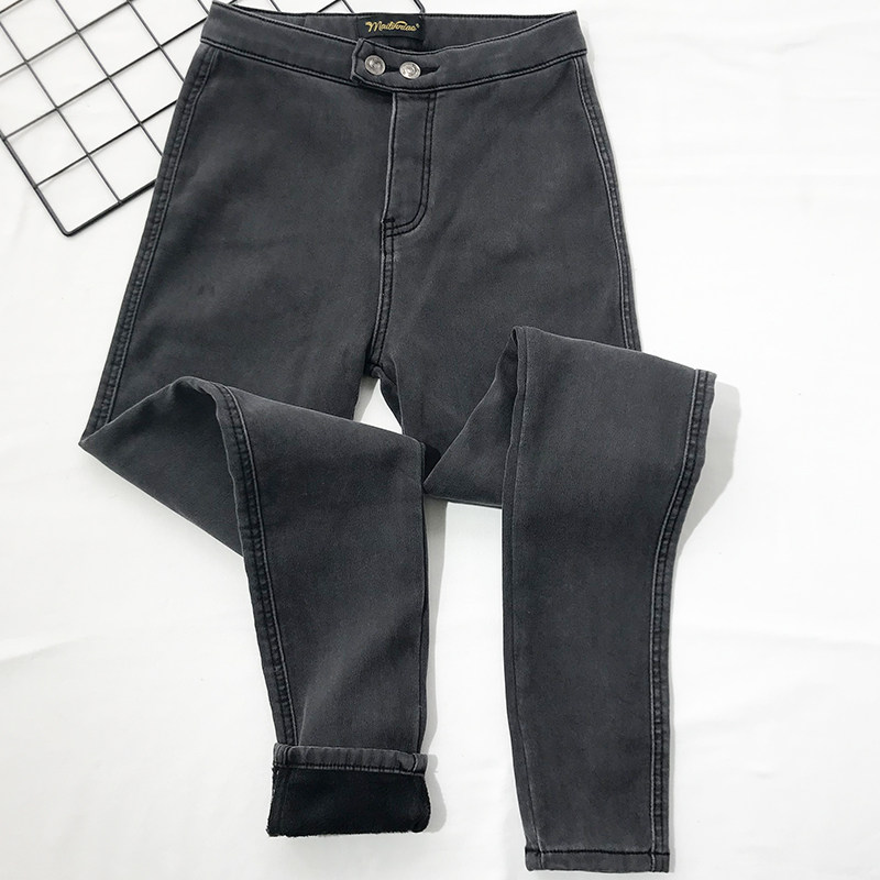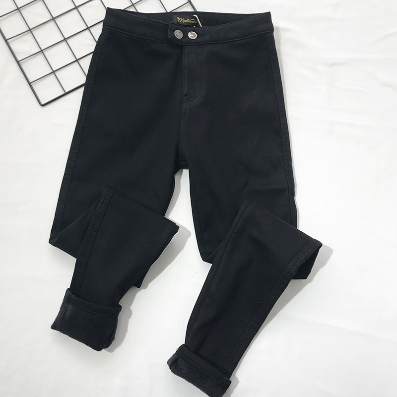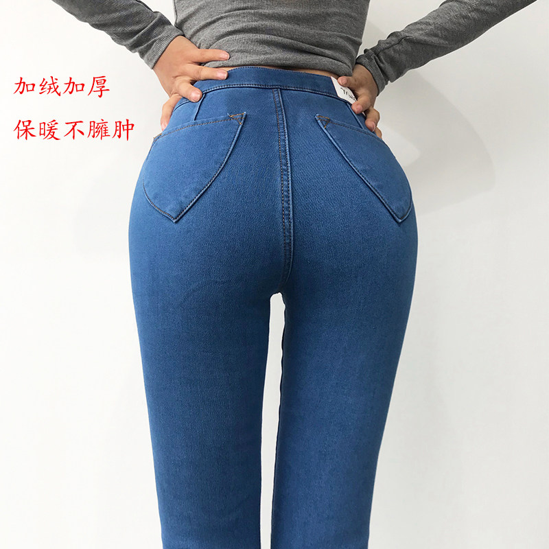 Эластичные флисовые джинсы с начесом, штаны, зимнее белье для коррекции формы бедер, европейский стиль, высокая талия