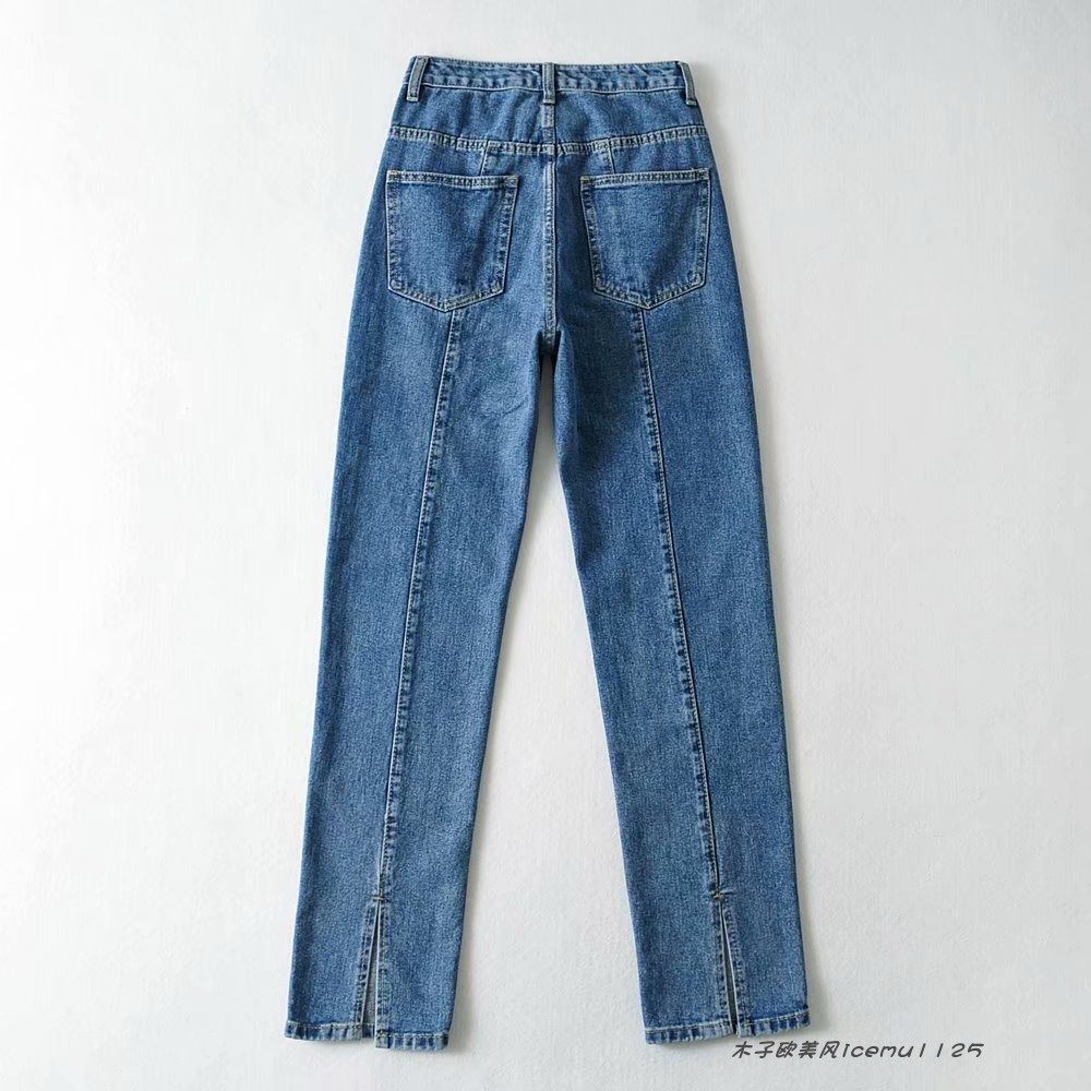 Осенние джинсовые джинсы, высокая талия