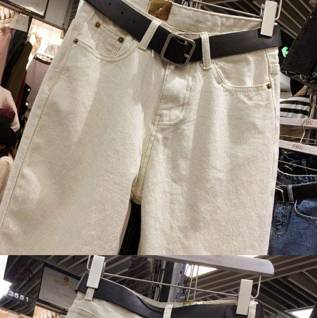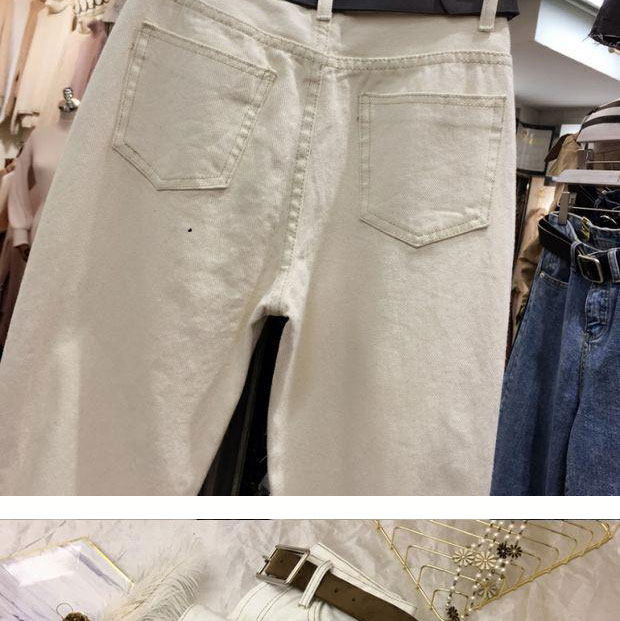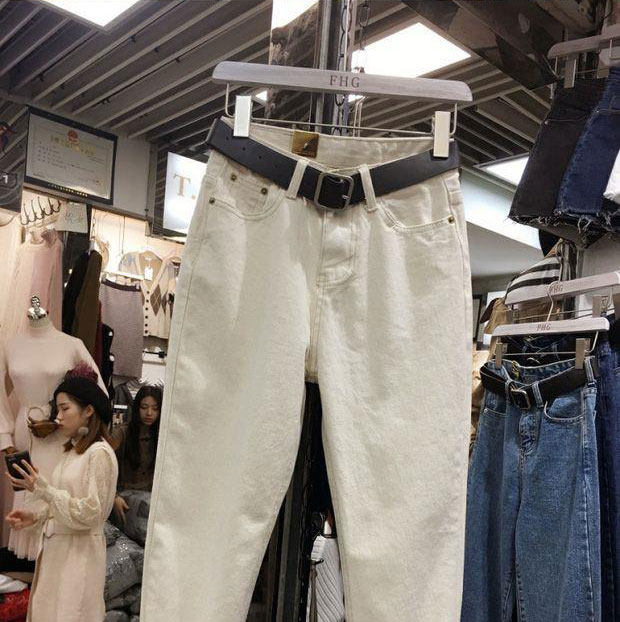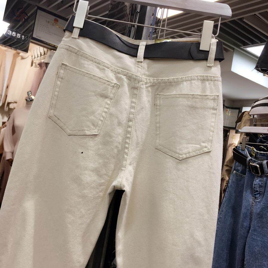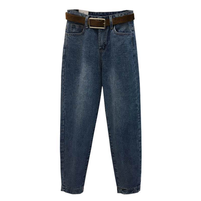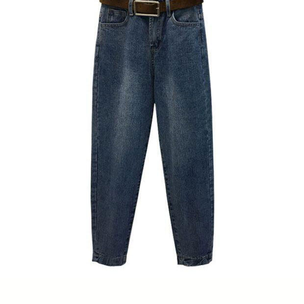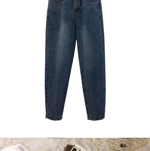 Демисезонный пуховик, джинсы, штаны, в корейском стиле, большой размер, свободный прямой крой, высокая талия