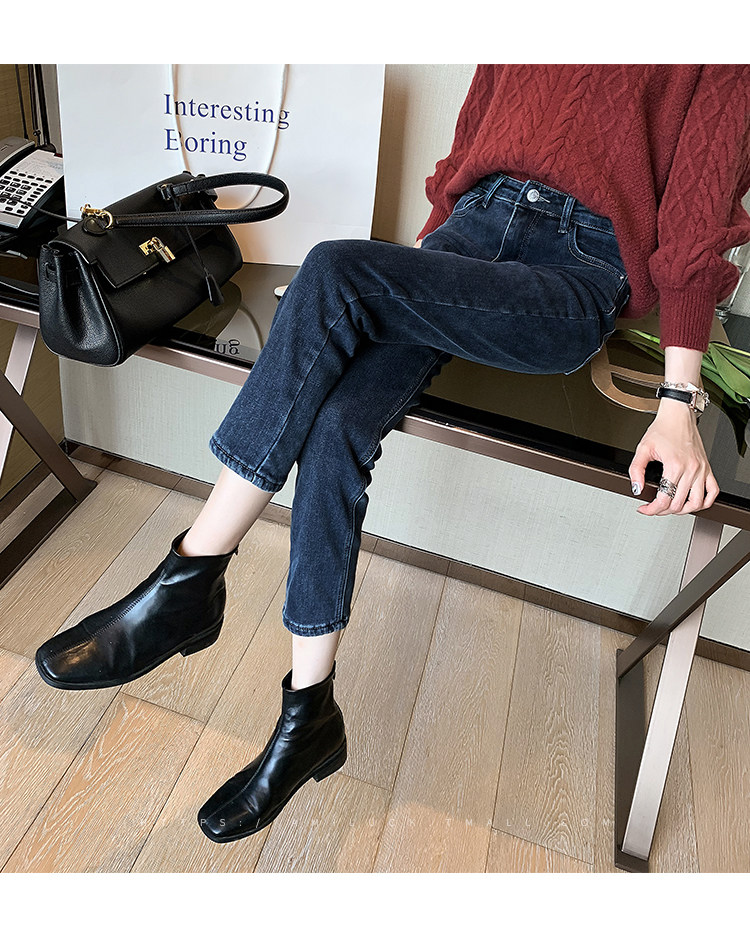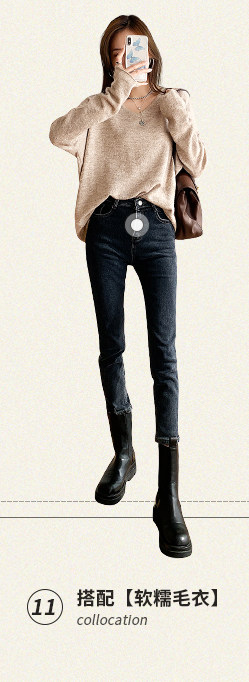 Флисовые осенние джинсы с начесом, штаны, коллекция 2021, по фигуре, свободный прямой крой, в обтяжку