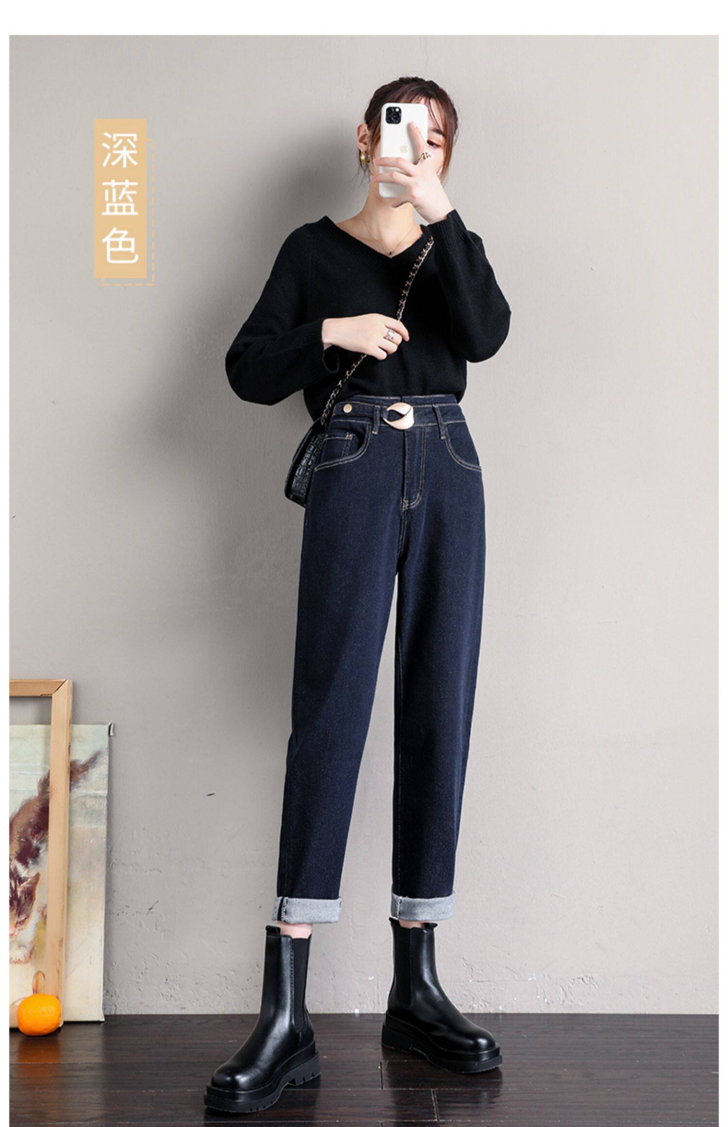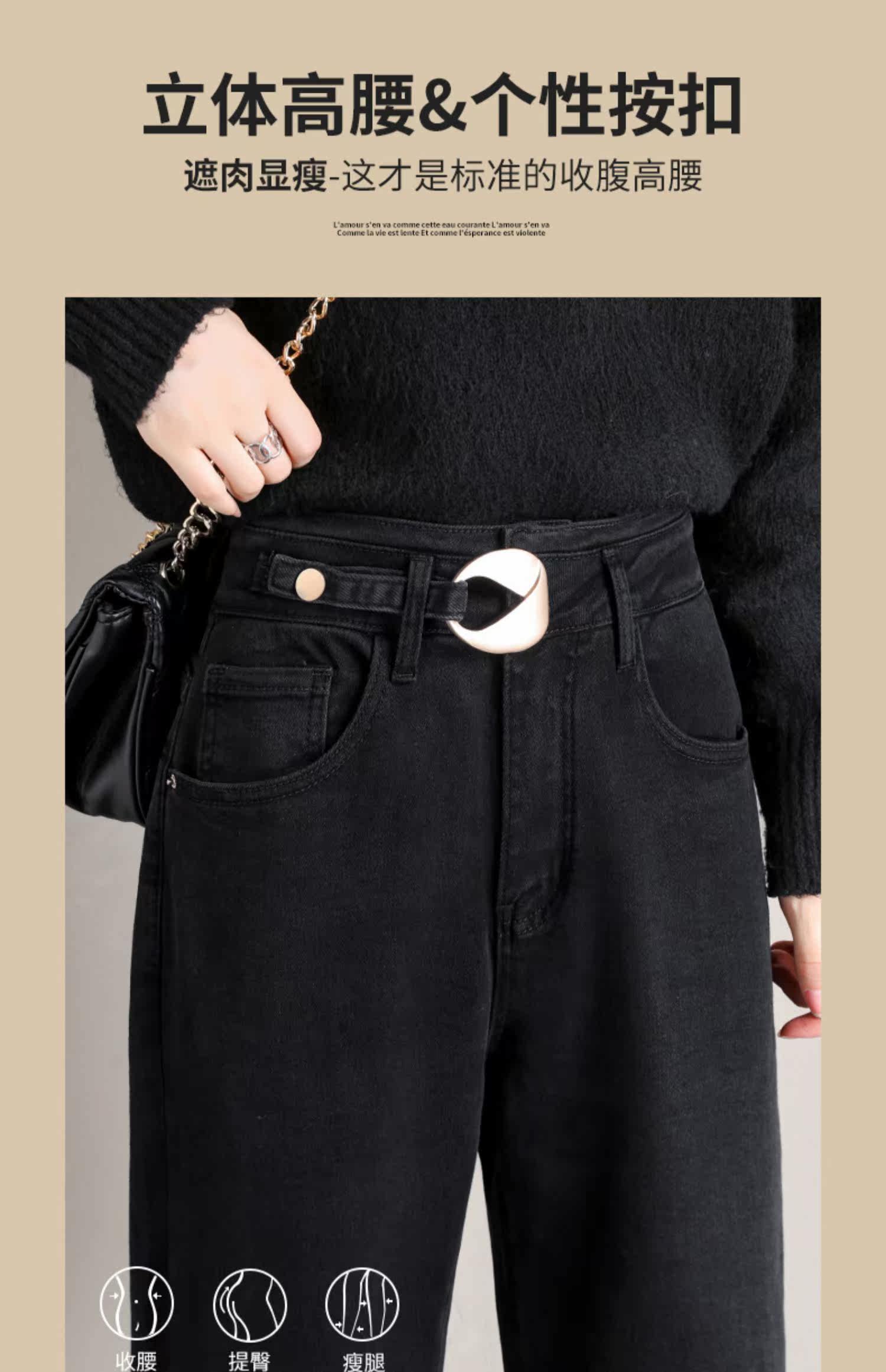 Черные джинсы, осенние приталенные весенние штаны, свободный прямой крой, 2021 года, высокая талия
