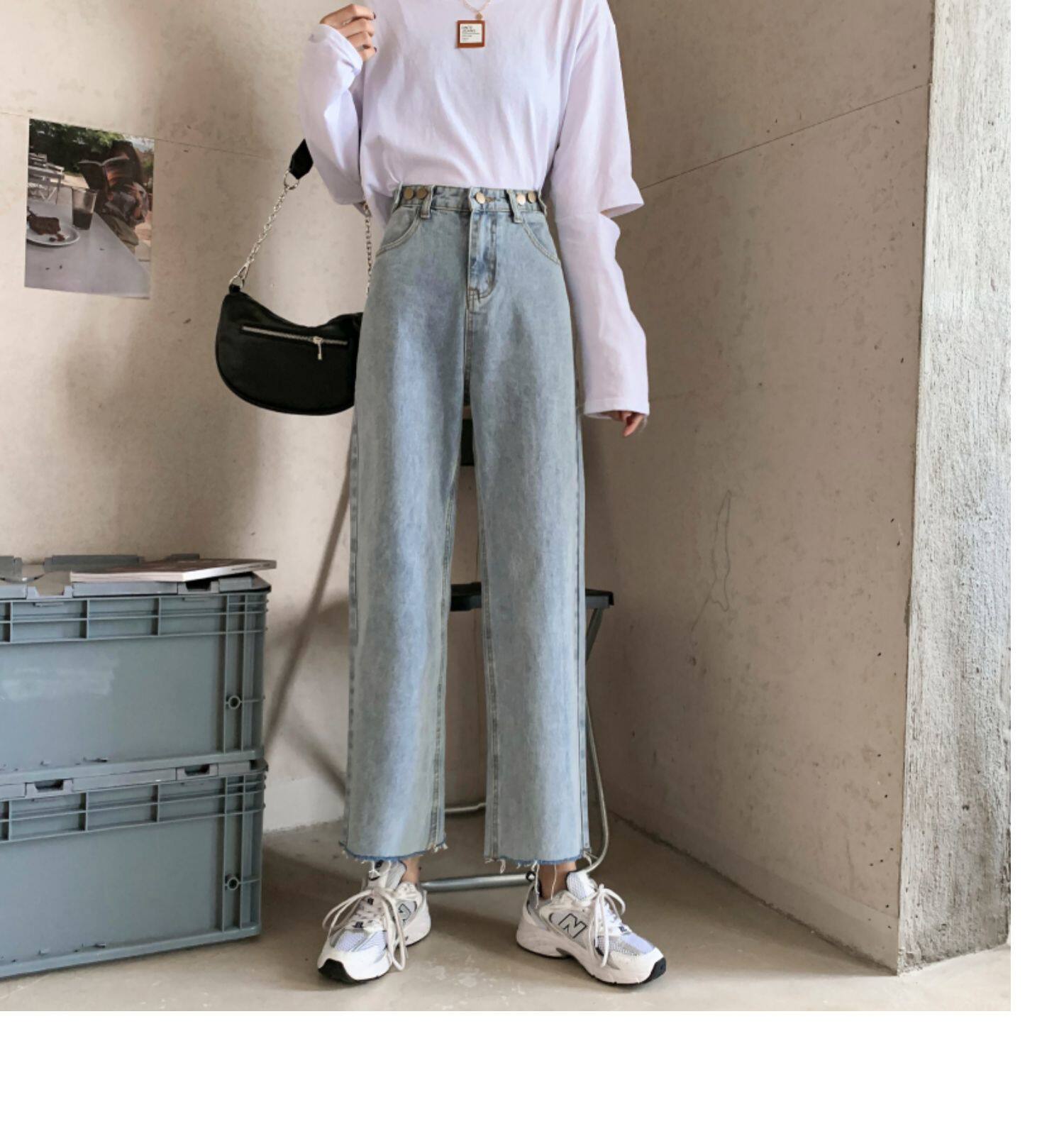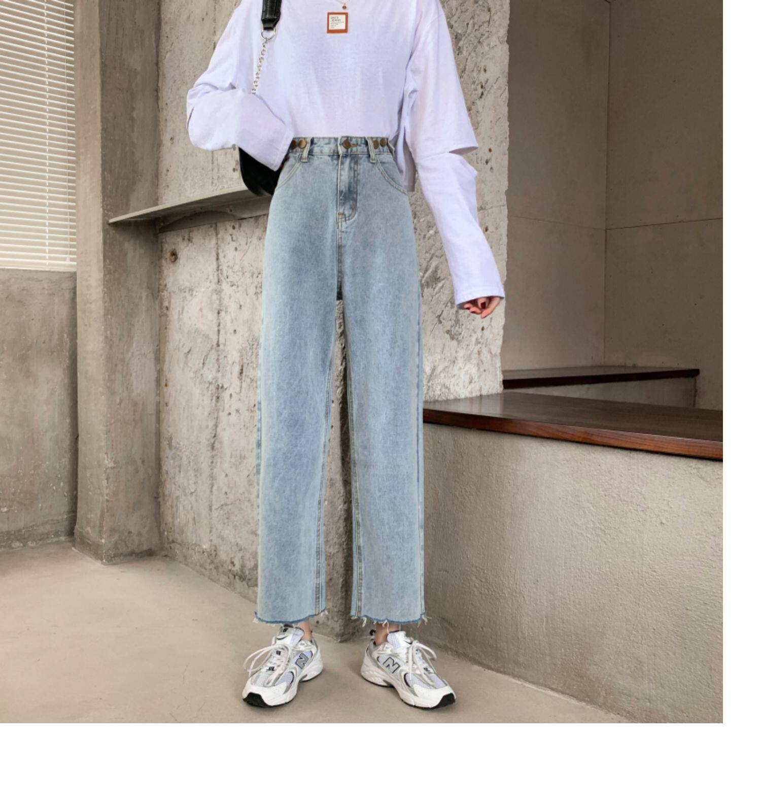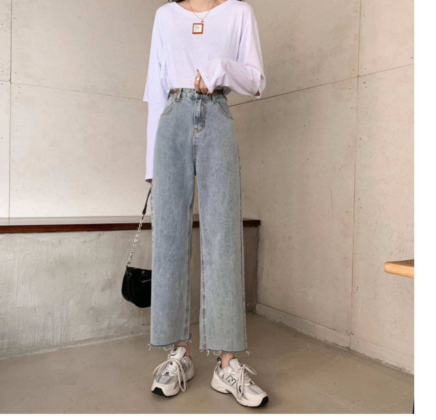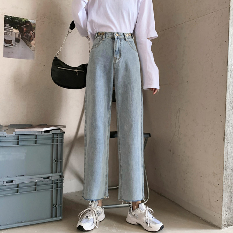 Осенние джинсы, штаны, высокая талия, свободный прямой крой, коллекция 2022, в корейском стиле, большой размер