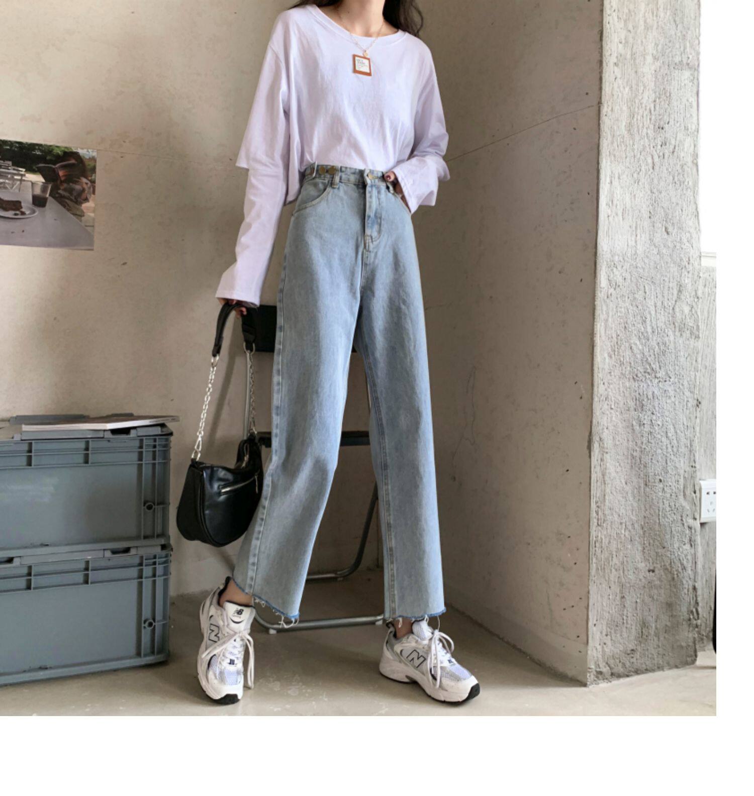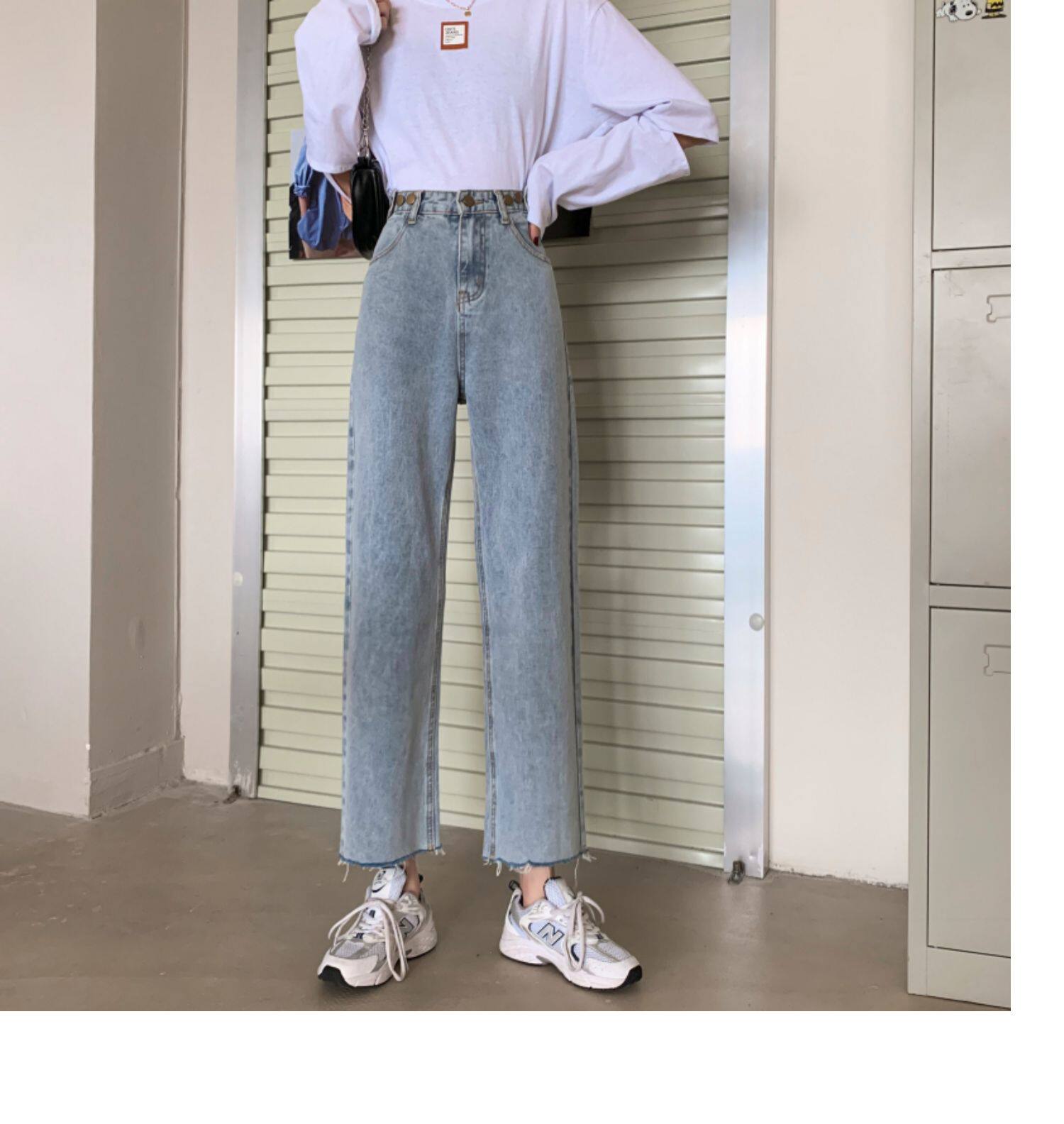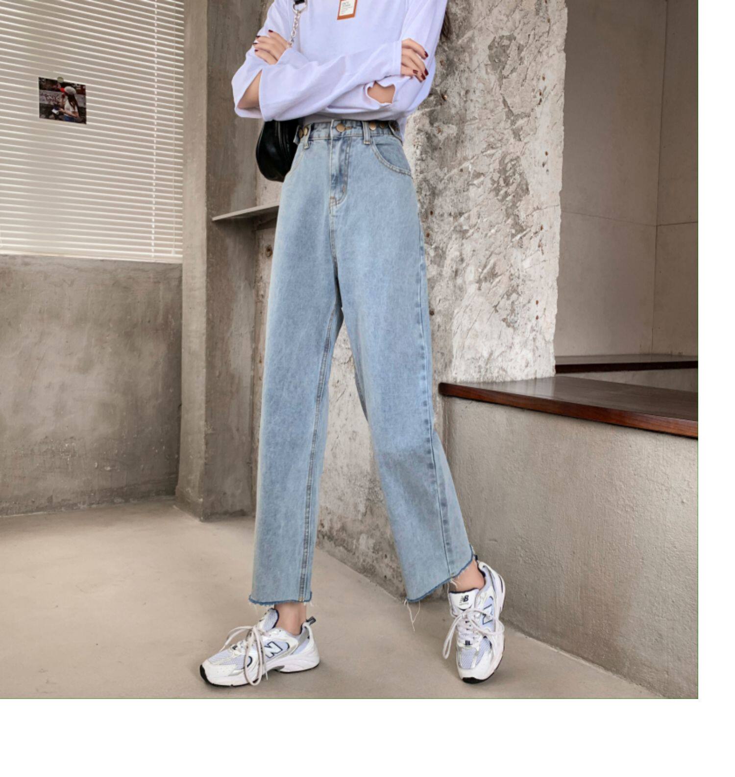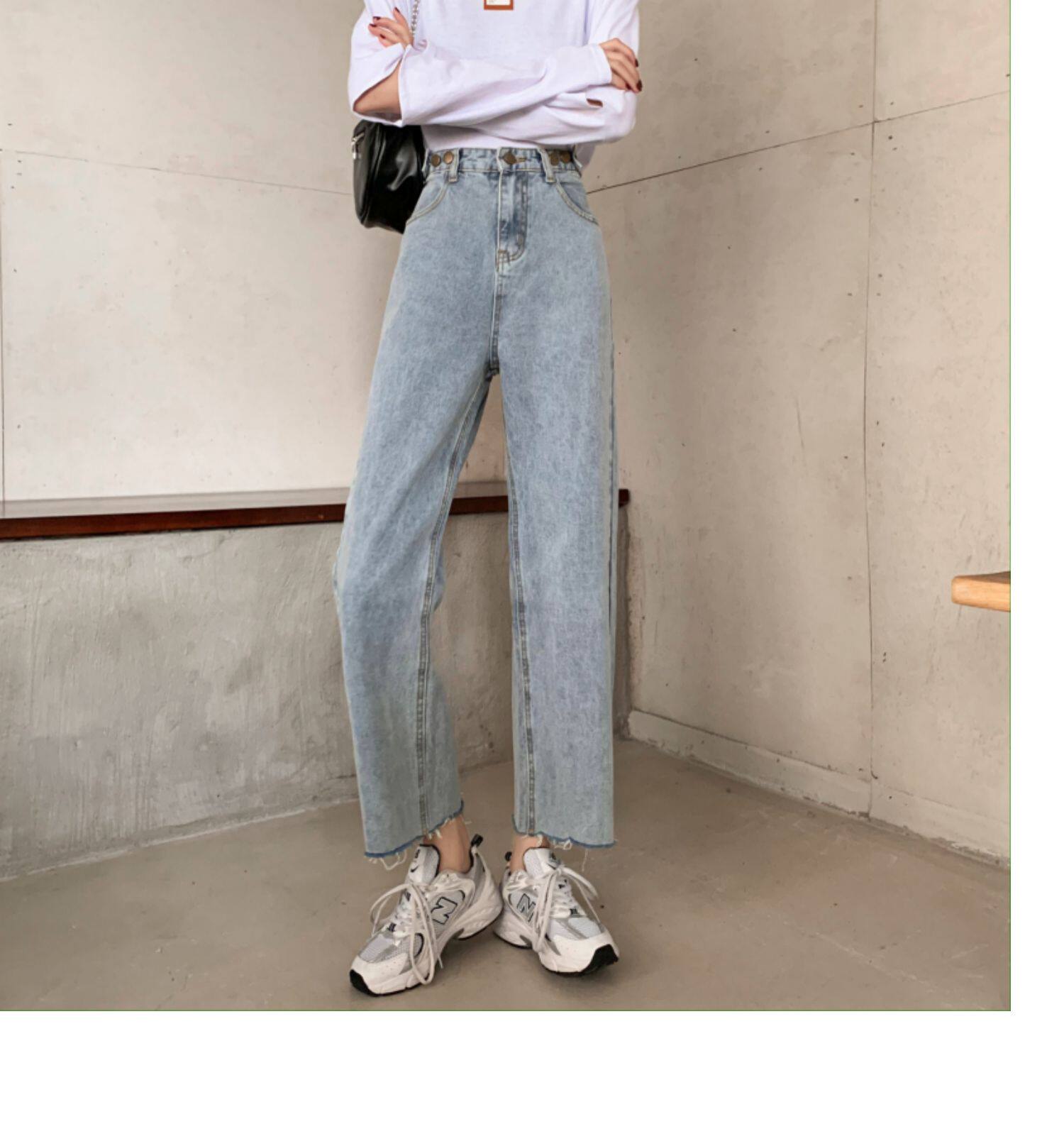 Осенние джинсы, штаны, высокая талия, свободный прямой крой, коллекция 2022, в корейском стиле, большой размер