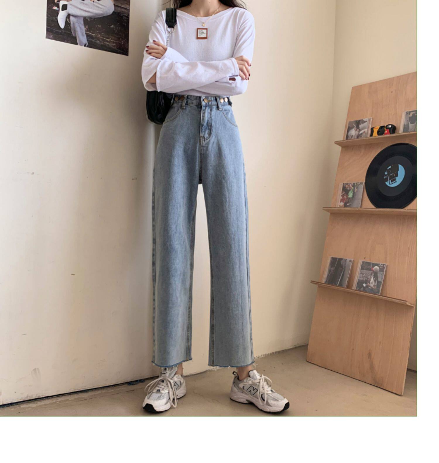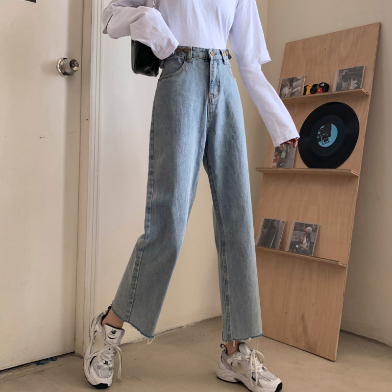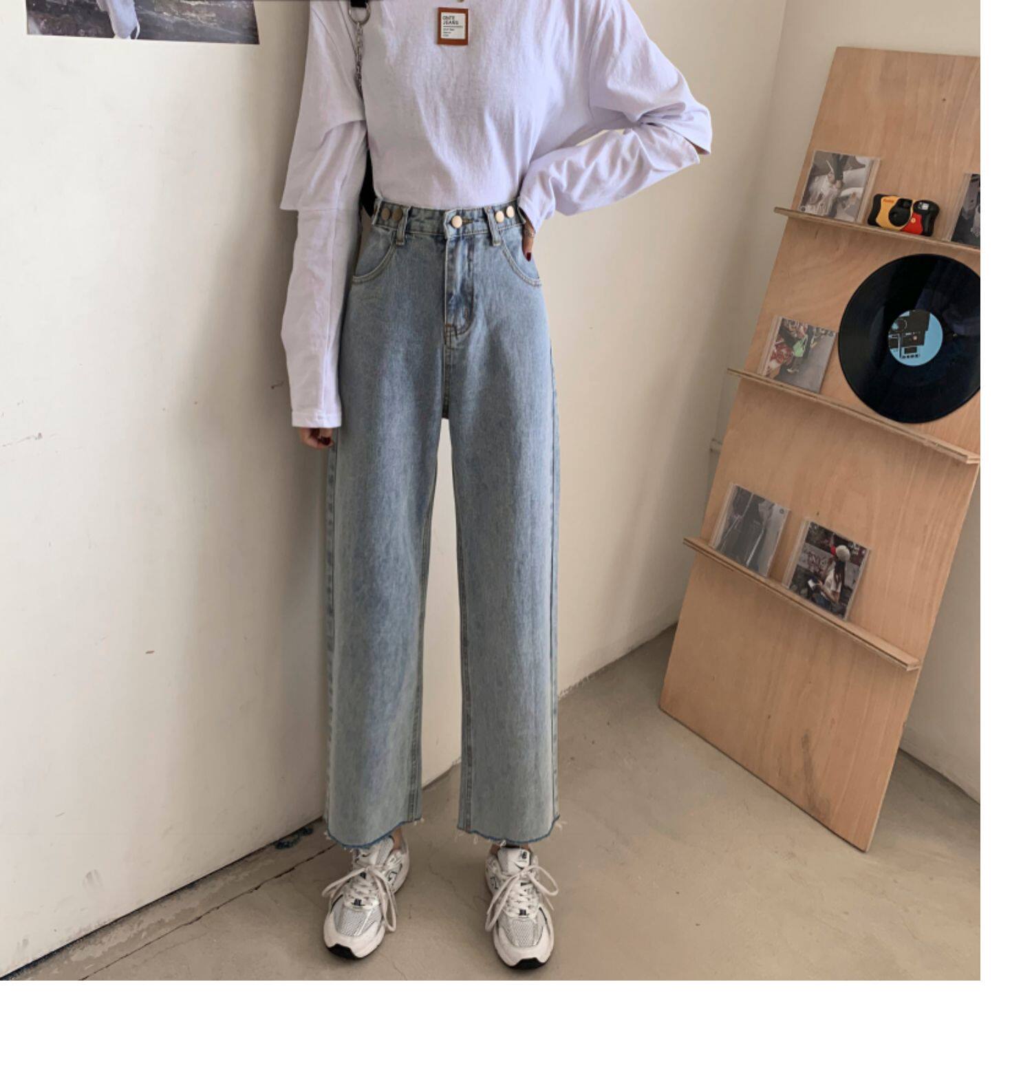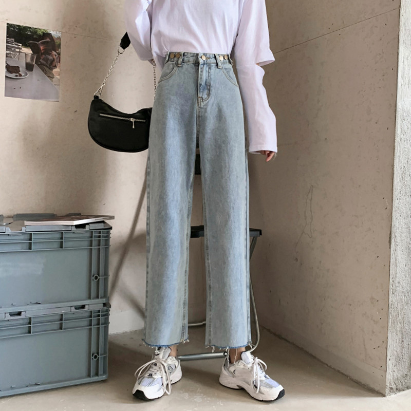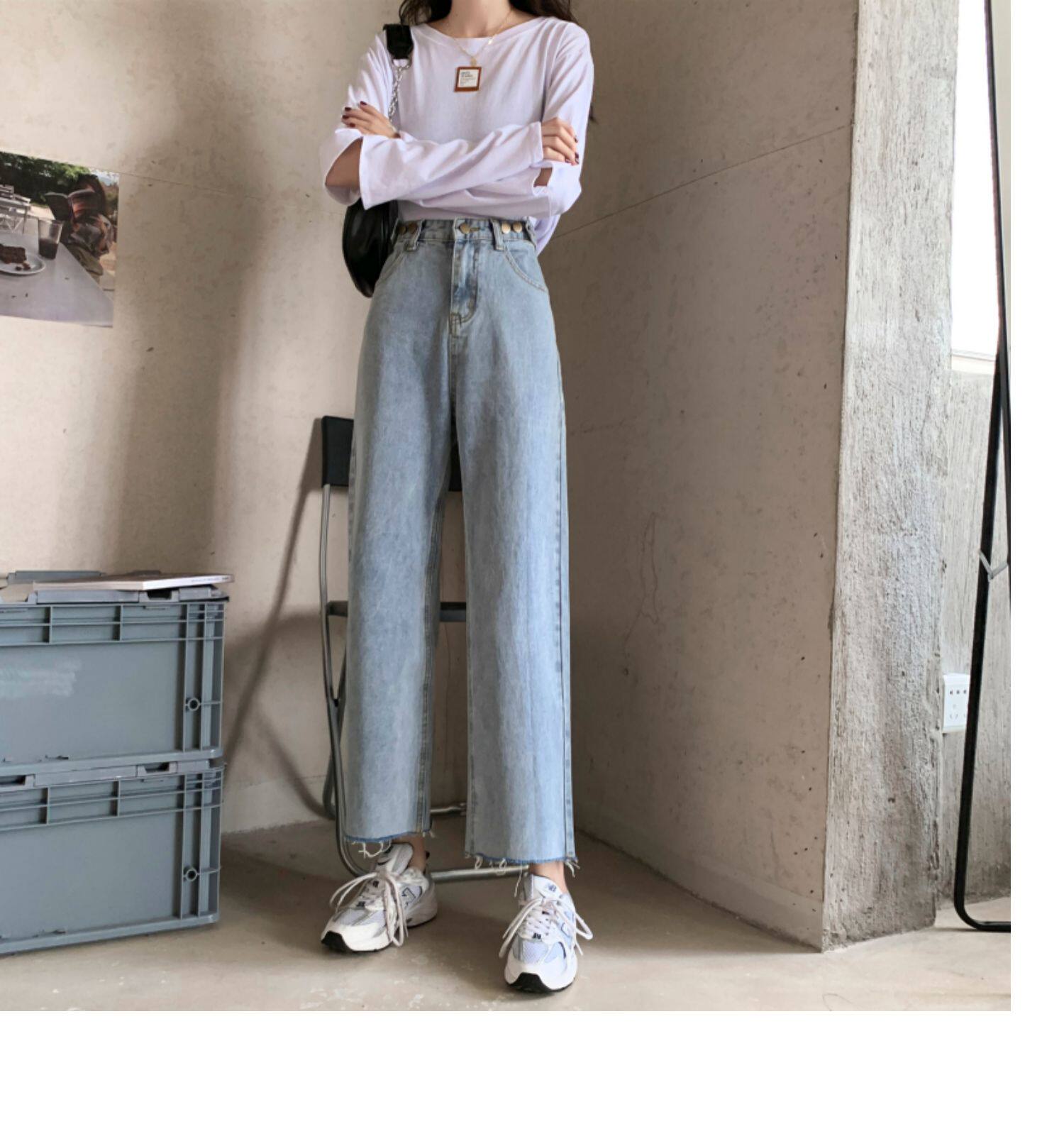 Осенние джинсы, штаны, высокая талия, свободный прямой крой, коллекция 2022, в корейском стиле, большой размер