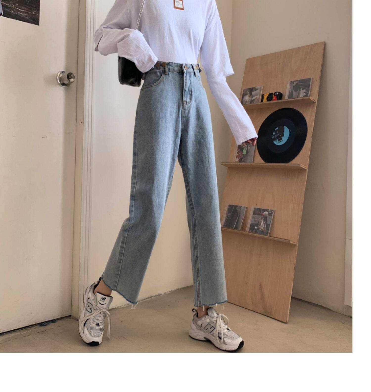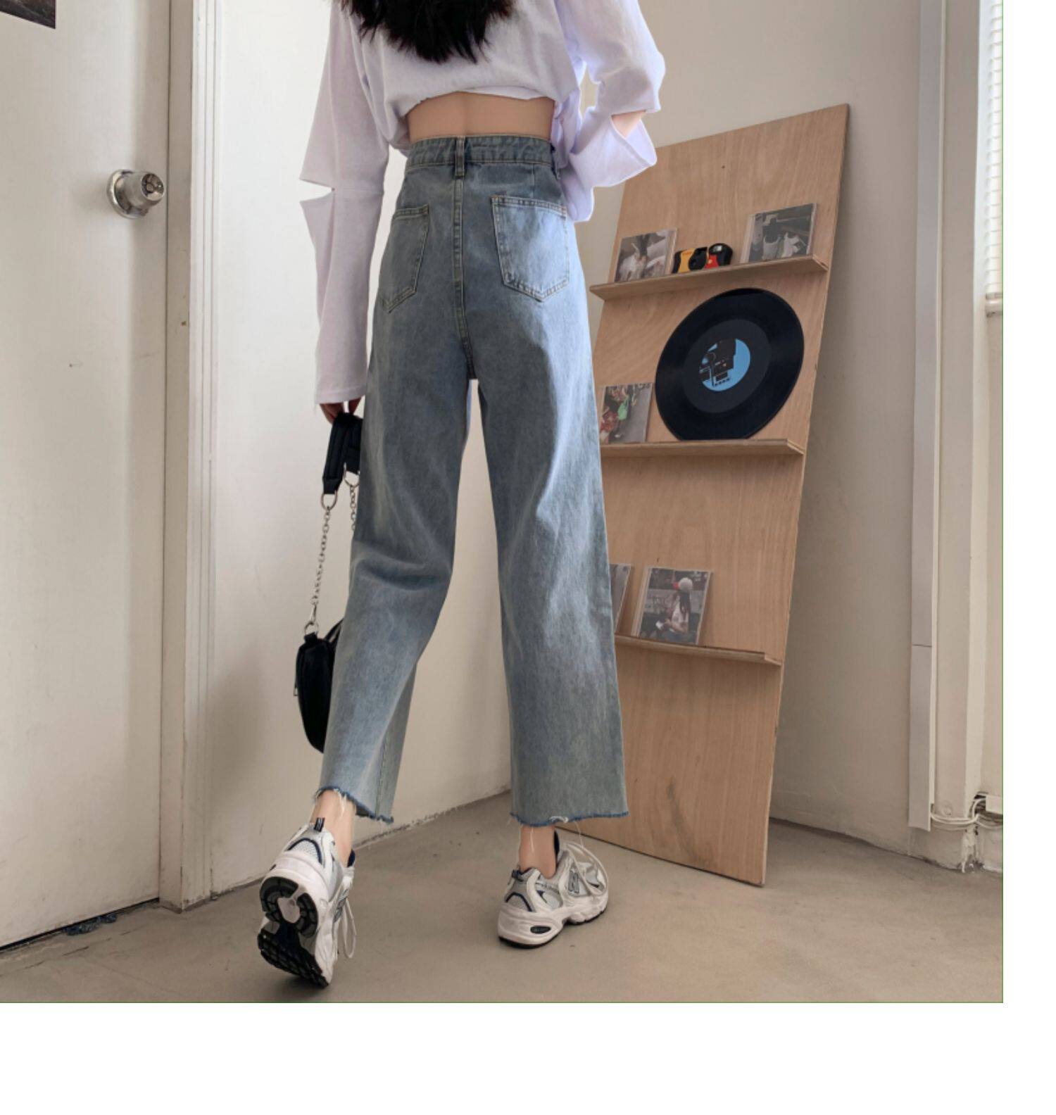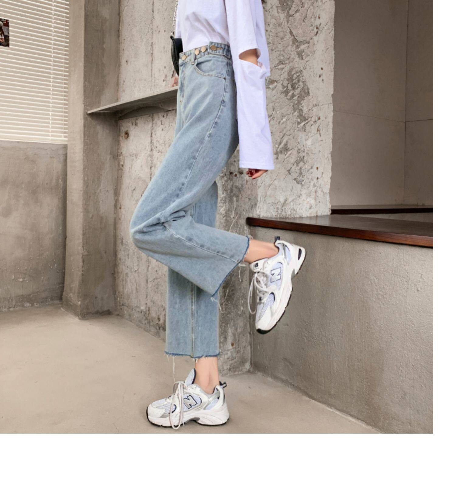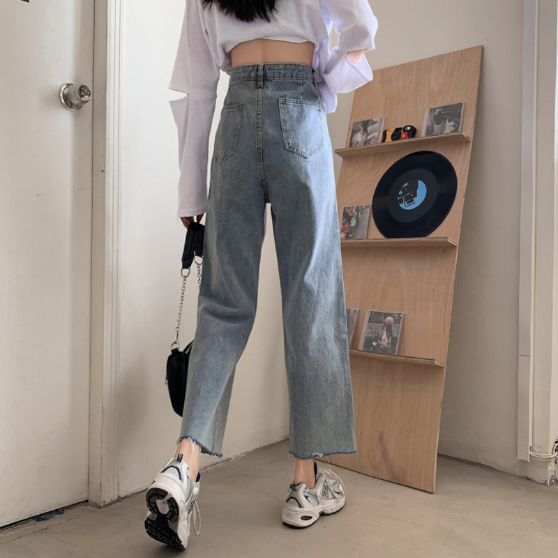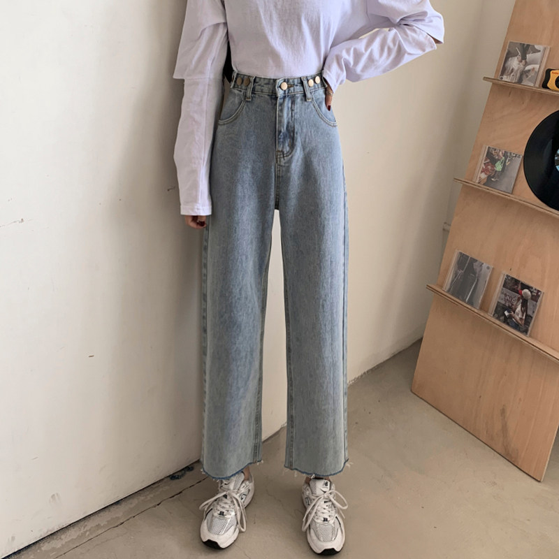 Осенние джинсы, штаны, высокая талия, свободный прямой крой, коллекция 2022, в корейском стиле, большой размер