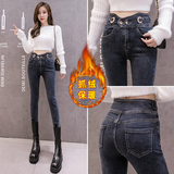Осенние флисовые джинсы с начесом, эластичные приталенные штаны, бархатный карандаш, коллекция 2021, новая коллекция, высокая талия