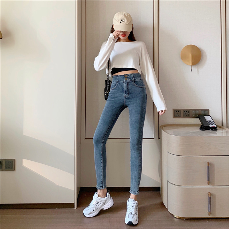 Ретро карандаш, осенние универсальные джинсы, штаны, высокая талия, 2023, по фигуре, облегающий крой, в обтяжку