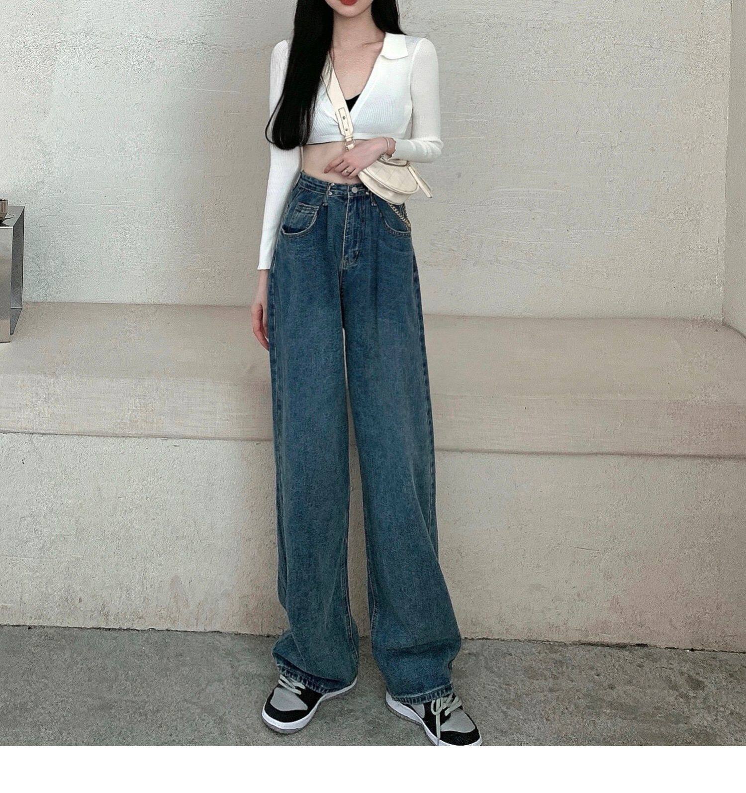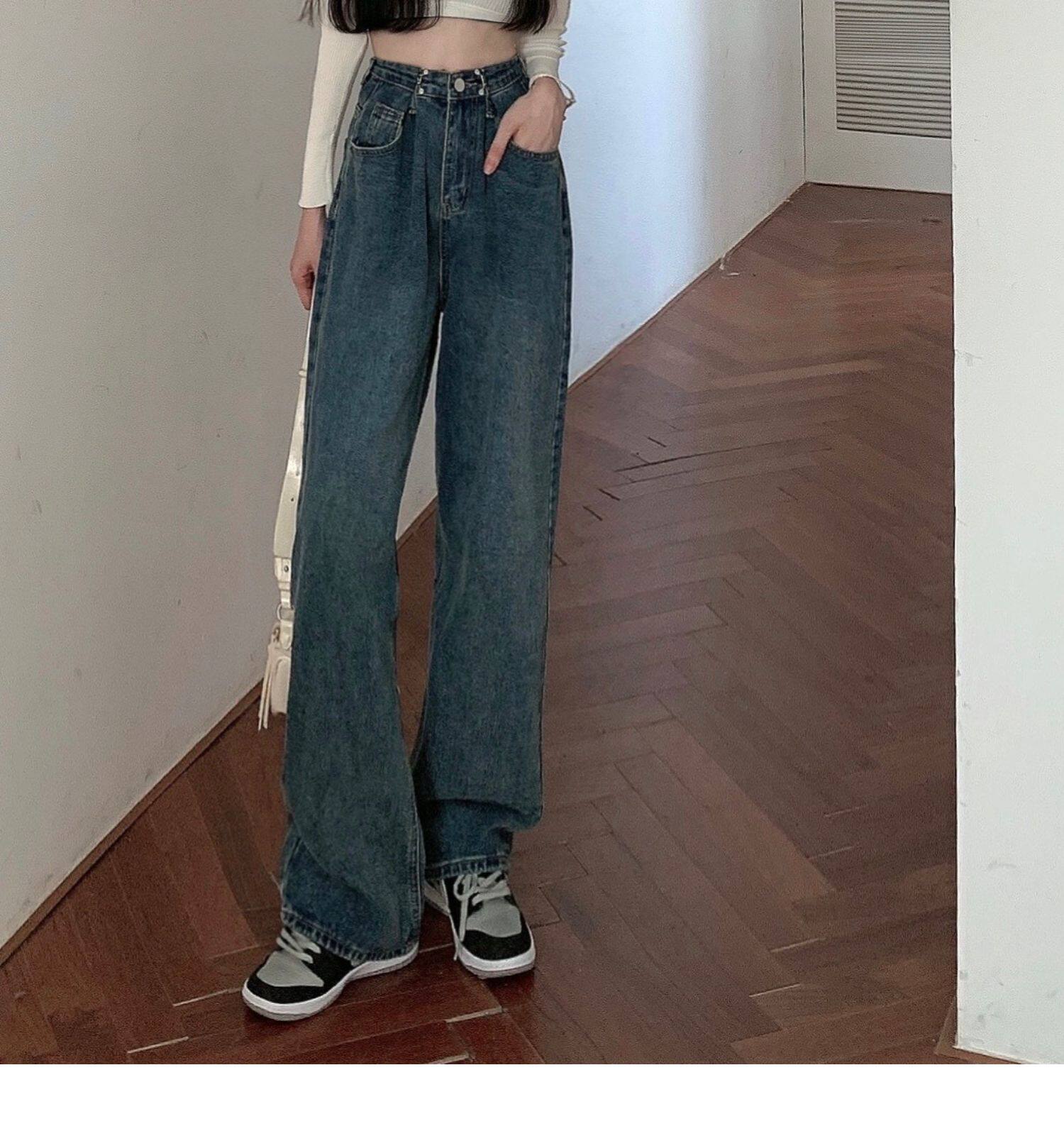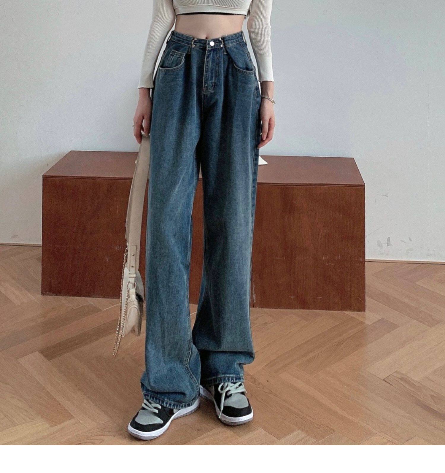 Джинсы, весенние осенние штаны, большой размер, высокая талия, свободный прямой крой, 2021 года, по фигуре