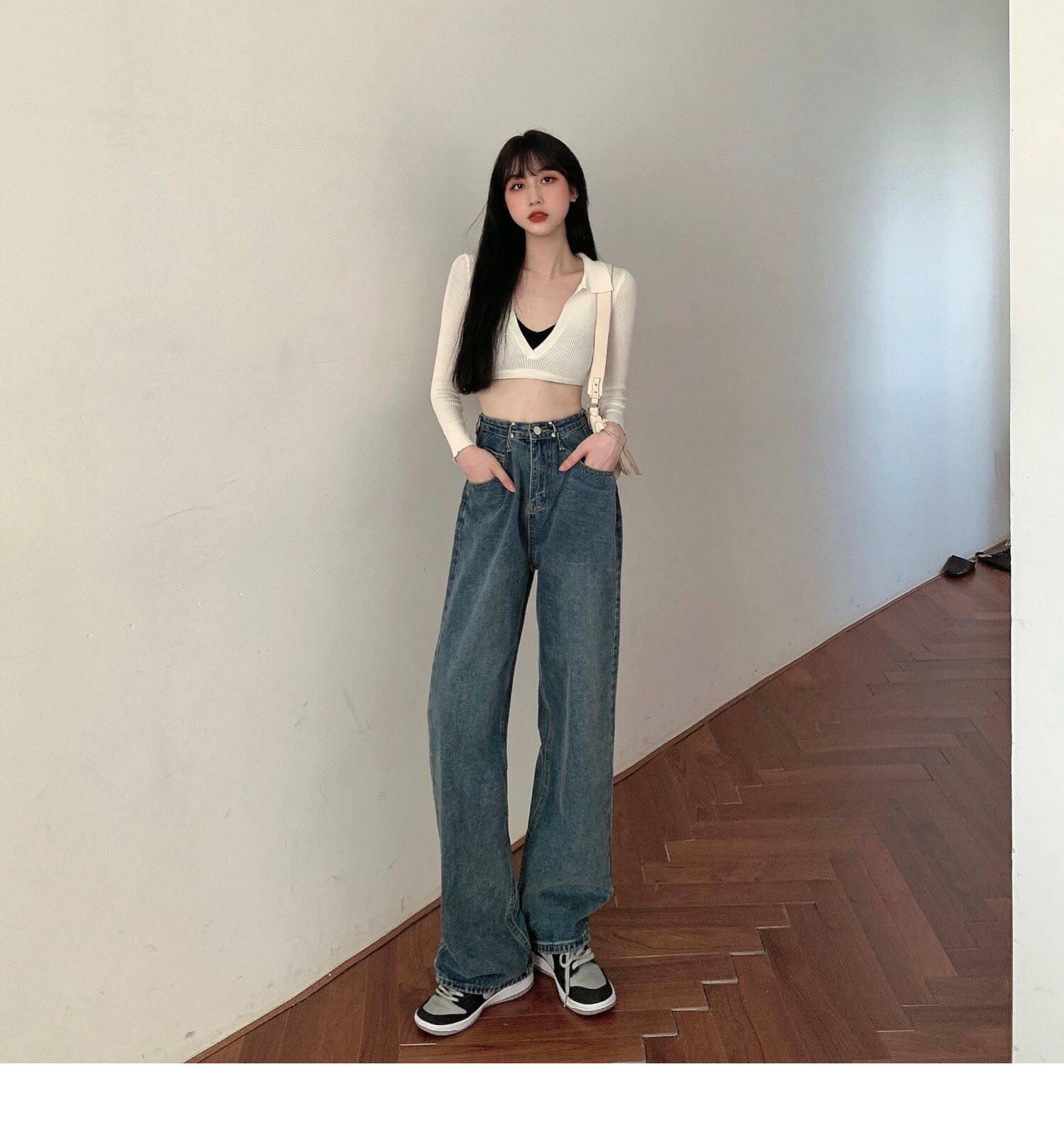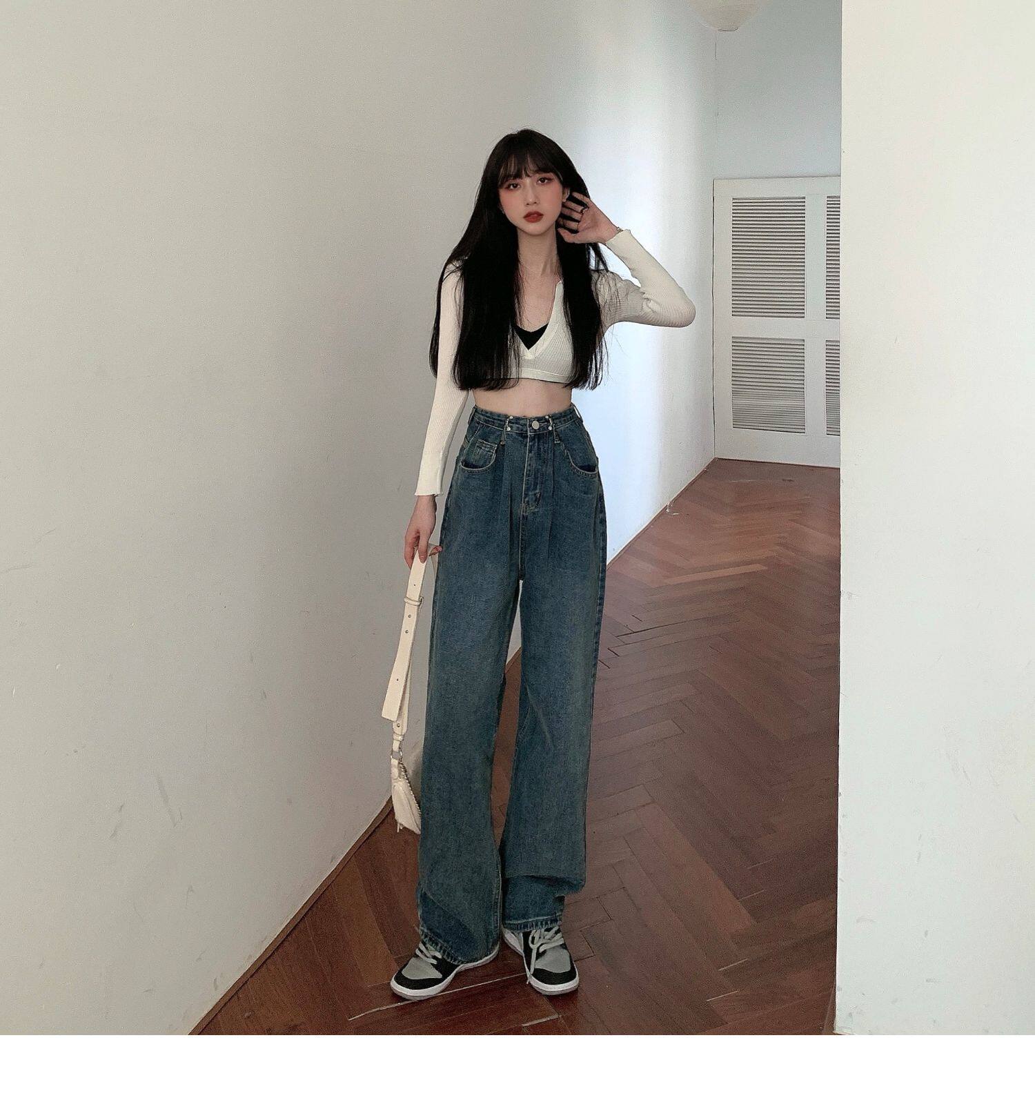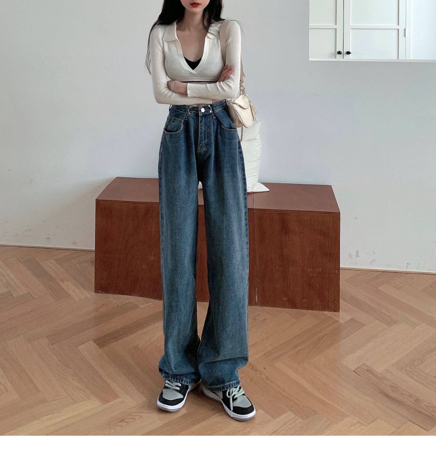 Джинсы, весенние осенние штаны, большой размер, высокая талия, свободный прямой крой, 2021 года, по фигуре
